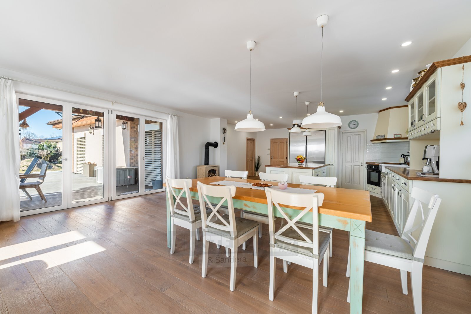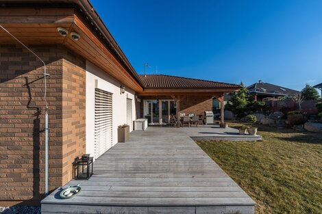 Novostavba rodinného domu hledá nového majitele. Pokud i vy hledáte prostorný dům bez nutných investic a velkou zahradou, podívejte se na tuto nabídku. Jedná se o přízemní rodinný dům zkolaudovaný v roce 2015. Dům je vytápěn plynovým kotlem prostřednictvím podlahového topení, přičemž přitápět lze i krbovými kamny. Plynový kotel zároveň ohřívá teplou vodu. Objekt je velmi dobře tepelně izolován a jeho energetická náročnost spadá do kategorie B. V interiéru jsou použity kvalitní dřevěné materiály - od podlah až po kuchyňskou linku. Na pozemku se nacházejí dvě parkovací stání s přípojkami (elektřina, voda, odpad) pro případné vybudování garáže. V zemi je umístěna nádrž na dešťovou vodu o objemu 4 m³ s rozvodem k vyvýšeným záhonům. Pozemek lze navíc snadno rozdělit na dva, přičemž druhou část lze využít jako samostatnou stavební parcelu. Více informací vám rád sdělím osobně.