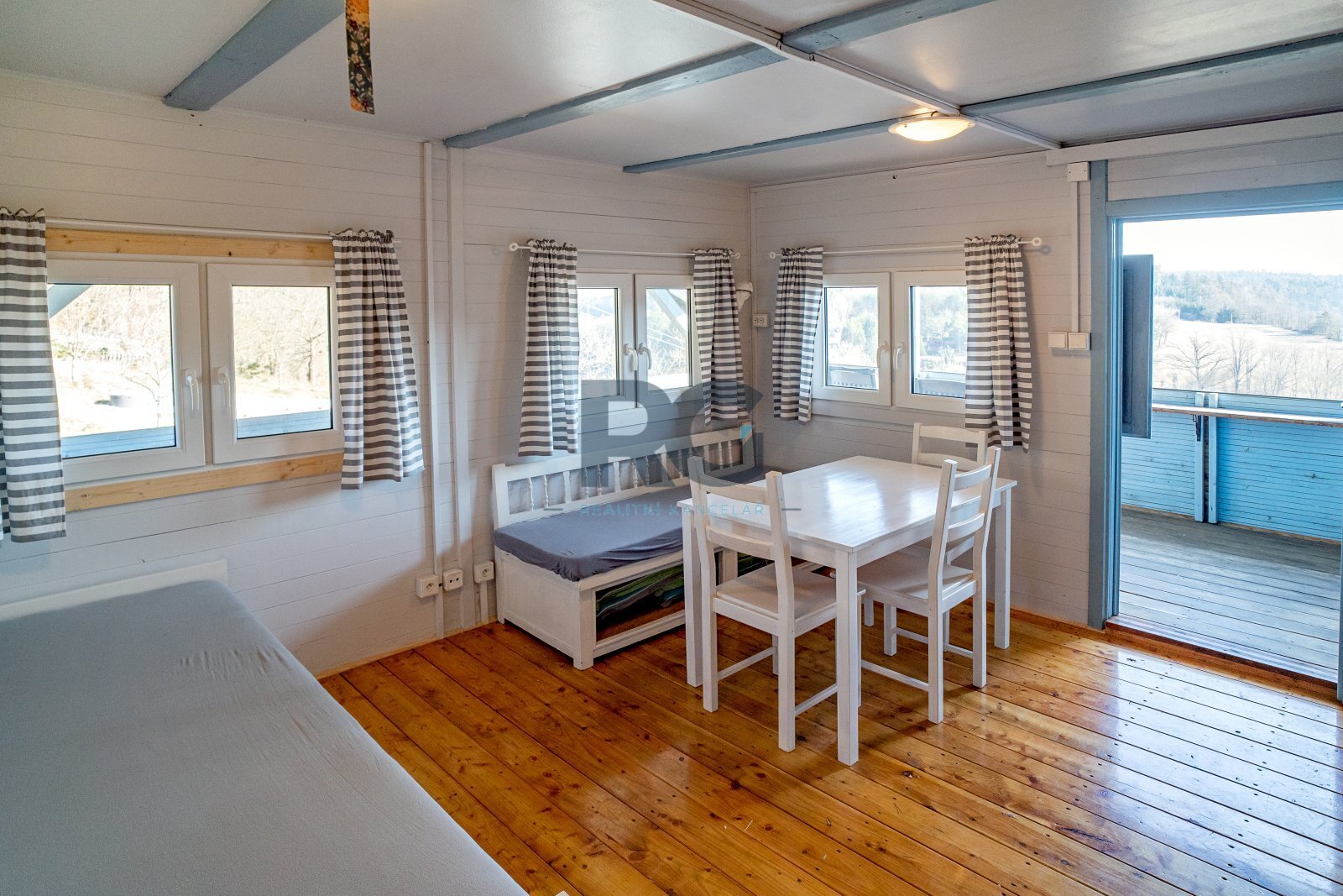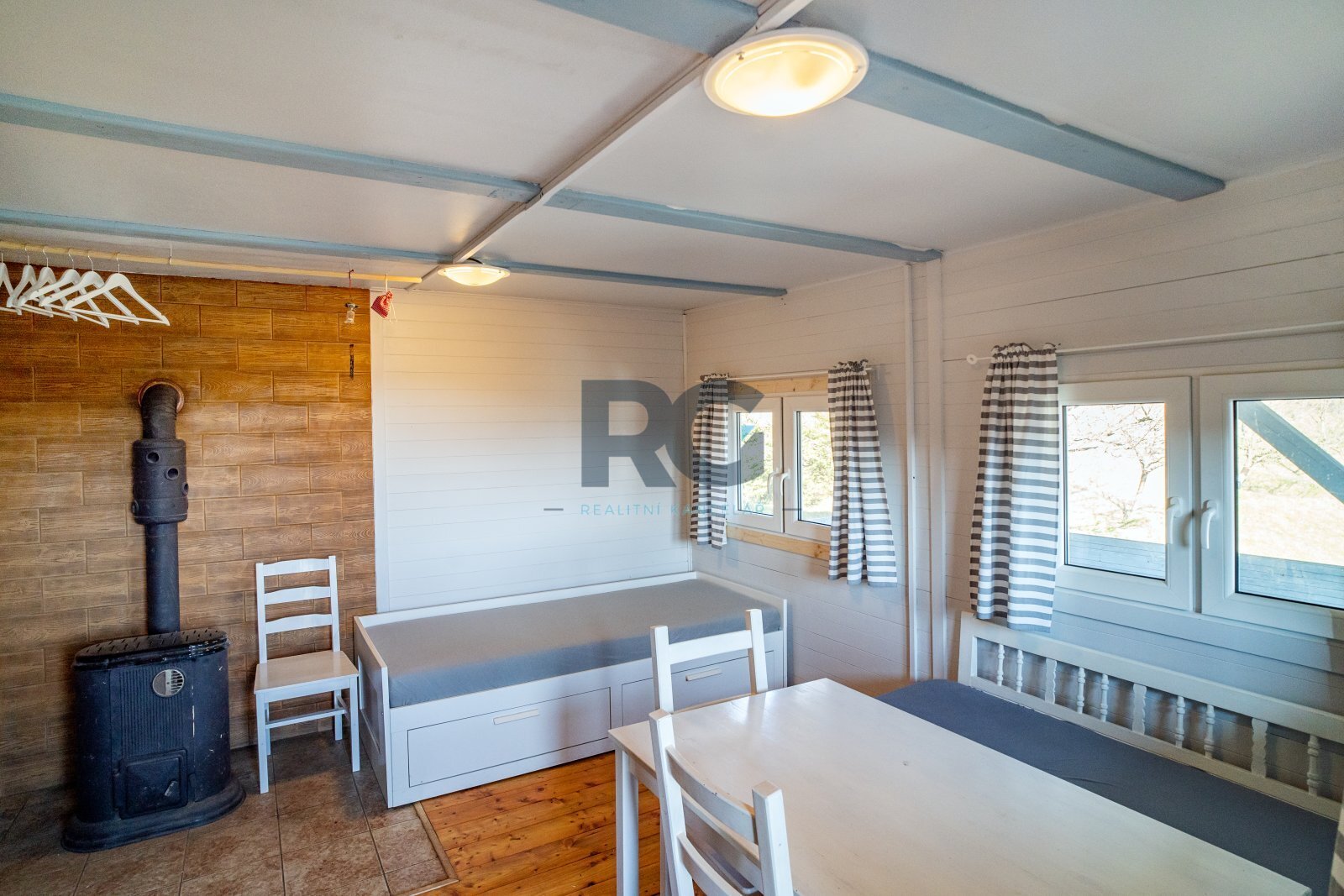 V zastoupení majitelů Vám nabízíme ke koupi tyto nádherné chaty, nacházející se na levém břehu řeky Otavy nedaleko jihočeského lázeňského města Vráž u Písku. Předmětem prodeje jsou 2 samostatné rekreační chaty v osobním vlastnictví postavené před cca 40 lety. V roce 2015 došlo k zateplení obou objektů a postupem času ke kompletní velmi vkusné rekonstrukci, díky níž je nyní možné obě chaty využívat celoročně. Je možné je také využít ke komerčním účelům v podobě pronájmu, který je u takových objektů velmi žádaný. Obě chaty jsou jednopodlažní, dřevěné na zděných základech. K dispozici jsou balkony s fantastickým výhledem do krajiny a na řeku Otavu. Pod každou chatou je sklep, u jedné navíc terasa, u obou jsou připravena místa pro bazén. Oba objekty obklopuje vlastní pozemek o výměře 2433 m2. Jelikož jsou oba objekty na sobě nezávislé, bylo by možné pozemek jednoduše rozdělit. Také se nabízí i možnost postavit případně další chatu. Každá chata nabízí majitelům obytný prostor s kuchyňským koutem a odděleným prostorem na spaní. Dále disponuje koupelnou se sprchovým koutem, toaletou a úložnými prostory. Oba objekty se nabízí včetně veškerého vybavení, které je na fotografiích. Inženýrské sítě: plyn- ne, elektřina- 230/400 V, voda- vlastní vrt s pitnou vodou, kanalizace- septik, vytápění- lokální na tuhá paliva (kamna), přímotopy. Tato jedinečná nabídka čeká právě na Vás, pro více informací či prohlídku neváhejte kontaktovat makléře.