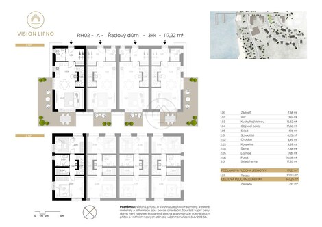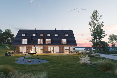 Představujeme řadový dům s terasou a zahradou, který je součástí prémiového resortu VISION LIPNO, přímo u břehu Lipna. Krajní jednotka o dispozici 3+kk s podlahovou plochou 117 m2 je součástí řadového domu a nabízí moderní zázemí k rekreaci pro Vaši rodinu i budoucí hosty. Přízemí vítá prostorným zádveřím a samostatným WC. Následuje velký obývací pokoj s kuchyní, jídelnou a vstupem na krásnou terasu a zahradu s výhledem na vodní hladinu Lipna. V podkroví se nachází dva pokoje, koupelna a v dalším podlaží skladovací prostory. VYBAVENÍ Cena je včetně 21% DPH a zahrnuje dodávku nadstandartních zařizovacích předmětů LAUFEN, velkoformátových dlažeb 120 x 60 cm a obkladů. Součástí jsou kvalitní vinylové podlahy, interiérové dveře a zárubně PRÜM. Dům je vybaven Smarthome technologií s napojením na centrální systém, ze kterého lze dálkově kontrolovat přístup a zabezpečení objektu, včetně optimalizace vytápění elektrokotlem a osvětlení. Na přání klienta lze zajistit kompletní interiérové zařízení - nábytek, spotřebiče i dekorace, vše ve vysokém standardu a sladěné s designem resortu. Vizualizace jsou pouze ilustrativní. Pro přesný popis stavebních standardů a vybavenosti nás prosím kontaktujte. RESORT VISION LIPNO Jedná se o výjimečný a atraktivní resort, který cílí na všechny skupiny a má potenciál být nejlepším místem pro trávení volného času na Lipně. K dispozici bude recepce, beach bar a další služby. V areálu je také písčitá přírodní pláž, přístaviště pro 39 lodí, dětské hřiště a místa pro další aktivity jako pétanque, disk golf aj. Připraven je také rental a facility managment, který se stará o správu a údržbu resortu, odklízení sněhu, sekání trávy aj. Na prodej jsou i další pozemky, apartmány a řadové domy. LOKALITA Poloha Kovářského poloostrova s výhledem na největší vodní plochu ČR v srdci Šumavy láká v každém ročním období. Na jaře a na podzim na turistiku, výlety do přírody, či cyklistiku. V létě pak vítá zejména milovníky vodních sportů - plavání, jachting, surfing, kiting, či sportovní rybolov. V zimě pak nabízí téměř 12 km sjezdových tratí, lyžařskou a snowboardovou školu, známý snowpark, běžecké tratě a dětské lyžařské hřiště. Pořiďte si nemovitost v soukromé top lokalitě u vody v krásné přírodě, v podobě investice s pravidelným výnosem a dlouhodobým zhodnocením. Exkluzivně nabízíme celoroční údržbu a správu pronájmu nové nemovitosti v období Vaší nepřítomnosti. • Výjimečný řadový dům s výhledem na vodu • Prostorná terasa s předzahrádkou • Luxusní zařízení a Smarthome technologie • Možnost vlastního kotviště pro loď • All in one služby resortu, včetně správy pronájmu Kontaktujte specialistu na investice v lipenské lokalitě pro více informací, popřípadě se zastavte na nezávaznou prohlídku.
