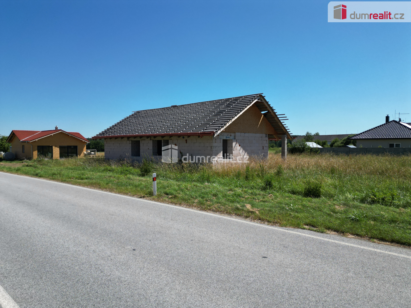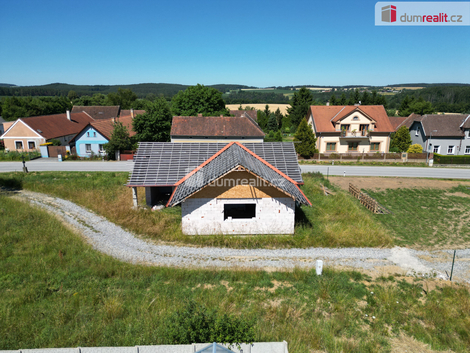 Dumrealit.cz Vám zprostředkuje prodej rozestavěného přízemního rodinného domu o zastavěné ploše cca 177 m2 v obci Nuzice, jen cca 4km od Bechyně a cca 7km od Týna nad Vltavou. Součástí nabídky je též podíl na přístupové cestě, kde již byl zaplacen podíl na zbudování inženýrských sítí - cesta, chodník, veřejné osvětlení vodovod. Střešní krytina součástí nabídky. Stavba jednopodlažního domu vychází z projektu Euroline bungalov 1372, ., který byl upraven podle individuálních přání současných majitelů. Katalogová cena na euroline.cz za zhotovení této stavby "na klíč" činní 4.807.000,-. Dle informací zhotovitele je potřeba k dokončení stavby dle původních záměrů cca 1.400.000,- do cca 6-ti měsíců. Využití jeho služeb však není podmínkou k uzavření Smlouvy kupní. Elektřina na kraji pozemku, voda je v řešení, odpady boudou svedeny do septiku. Projektová dokumentace samozřejmě součástí nabídky. Celková plocha pozemku 1098 m2, z toho zastavěná 177 m2. Ev. číslo: 651745. Energetický štítek: A (89 kWh/m2/rok).