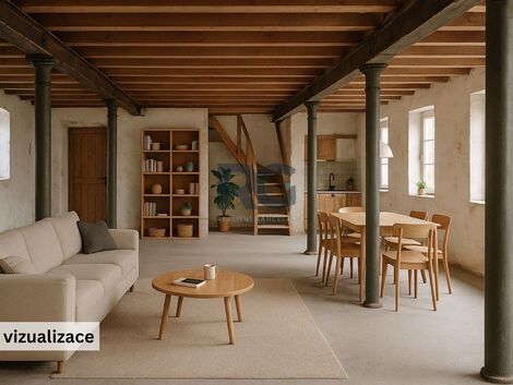 Nabízíme k prodeji zajímavou nemovitost, kterou lze využít k různým účelům. Leží na vyvýšeném kraji obce Myštice, nově vyměřeném pozemku o vel. 1200 m2 a poskytuje krásné výhledy na vyhlášený rybník Labuť a do okolní krajiny. Zděná stavba se rozprostírá na 989 m2 ve třech podlažích, z toho dvou podkrovních. Krovy i stavba jsou v dobrém stavu. Možnost napojení na obecní vodovod, odpady lze vyřešit domovní ČOV, elektřina je zavedena. Rekonstrukcí lze vybudovat jedinečné bydlení například v industriálním stylu, kdy lze využít velkého otevřeného prostoru nebo jej jednoduše dispozičně upravit podle individuálních představ a požadavků. Nabízí se i vybudování dvougeneračního bydlení a získat tak pozemek s nemovitostí za zajímavou cenu či využít objekt k bydlení a podnikatelskému záměru. Prosklením štítu získáte krásné výhledy na rybník a každodenní západy slunce. Momentálně je nemovitost pronajata jako sklad do konce roku 2025. Přijeďte navnímat jedinečnost lokality, ráda Vás provedu.
