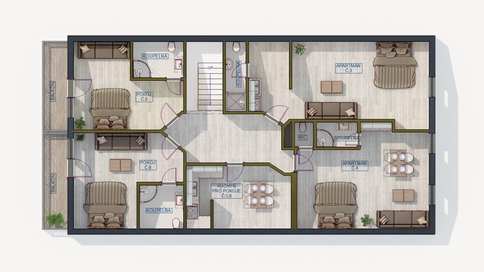 Nabízíme k prodeji stylový rodinný dům se šesti apartmány, situovaný v srdci přírody CHKO Šumava, v oblíbené rekreační oblasti Nová Pec - Láz. Nemovitost se nachází jen 2 km od vodní nádrže Lipno, což z ní činí ideální místo pro letní i zimní rekreaci. V létě zde najdete skvělé podmínky pro koupání, cyklistiku i turistiku, v zimě potěší možnost běžkařského i sjezdového lyžování (např. Hochficht, Smrčina). V okolí se nachází mnoho atraktivních míst: Schwarzenberský kanál, Plešné jezero, Boubínský prales nebo hrad Rožmberk. Poslední rozsáhlá rekonstrukce domu proběhla v roce 2012 - došlo k zateplení, výměně fasády a dalším úpravám. Přízemí domu je původní kamenné, kompletně podřezané a sanované, zatímco první patro bylo nově vystavěno. Celková užitná plocha činí 257 m2, zastavěná plocha 176 m2 a celková výměra pozemku je 892 m2. Do budoucna je možná i půdní vestavba. Vytápění je řešeno krbem na tuhá paliva s rozvodem teplého vzduchu do pokojů a chodeb. V domě je dále instalováno elektrické podlahové topení a apartmány jsou vybaveny klimatizacemi. Součástí největšího apartmánu je stylová kachlová pec. Parkování je zajištěno na pozemku až pro 5 vozidel, případně i na ulici před domem. Dům se již více než 20 let úspěšně pronajímá a disponuje stabilní klientelou. Díky své poloze, kapacitě a technickému stavu je ideální volbou jak pro investici s okamžitým výnosem, tak pro vlastní rekreační využití. V přízemí se nachází dva bezbariérové apartmány. Součástí kupní ceny je také zabudování nové infrasauny, která bude umístěna v přízemí v místnosti označené jako „sklad“ dle půdorysu. Montáž zajistí prodávající před nebo bezprostředně po převodu nemovitosti. Součástí nabídky je také možnost zajištění kompletní správy nemovitosti. Jsme schopni zajistit spolehlivého člověka na kompletní provoz včetně úklidu, správy rezervací, údržby objektu, péče o zahradu, komunikace s hosty přes Booking a dalších platforem, včetně praní prádla. V případě zájmu lze domluvit i pouze vybrané služby - například jen pravidelný úklid.