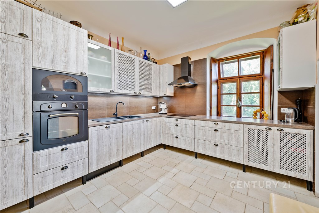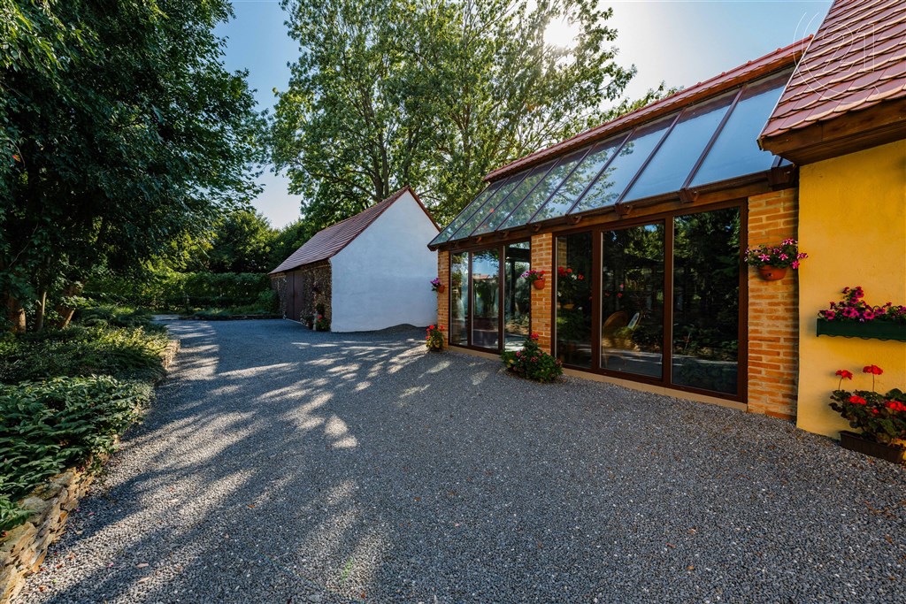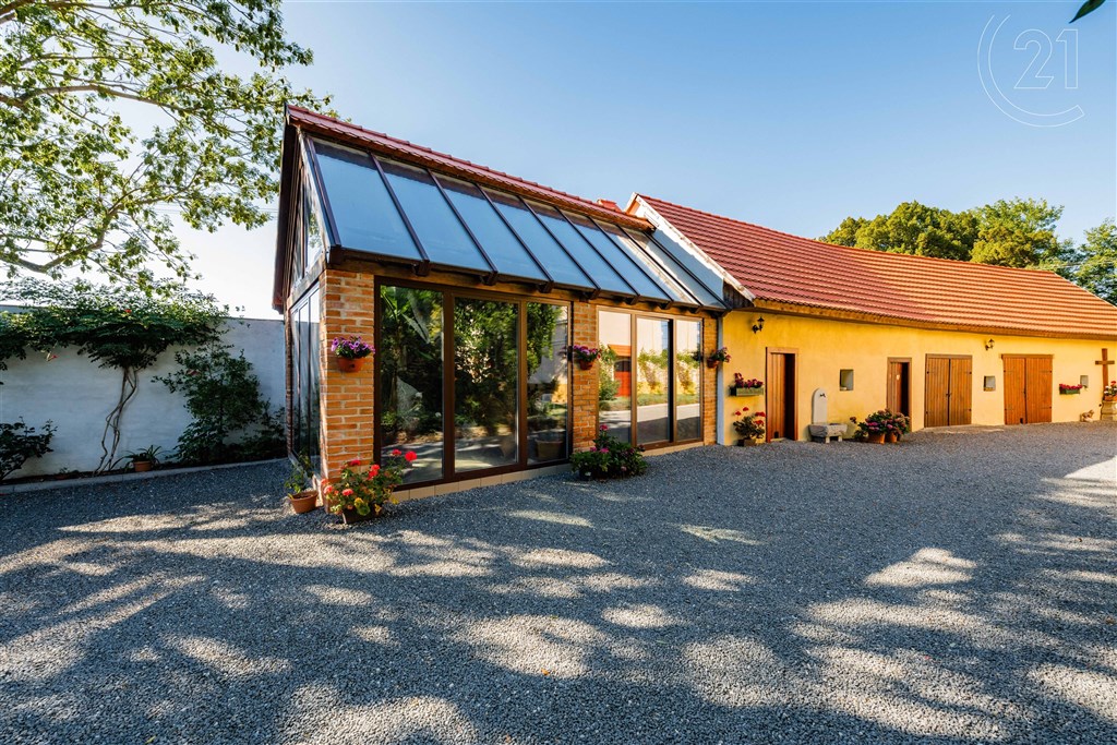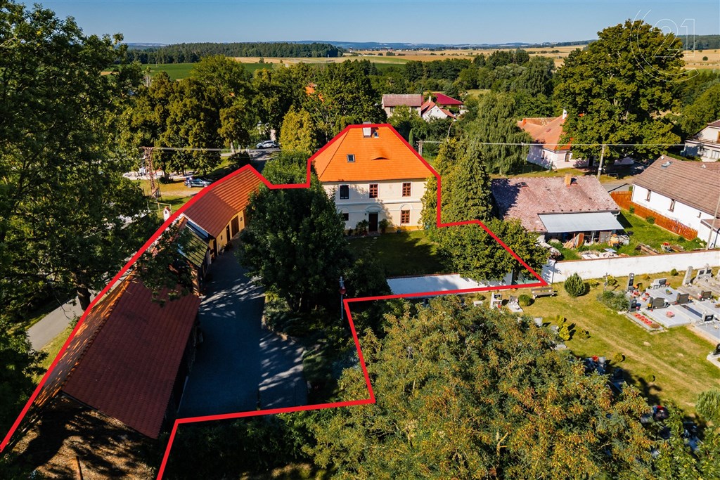 Jen málokdy se na realitním trhu objeví nemovitost s takovým charakterem a atmosférou, jakou má tato historická usedlost - bývalá fara v srdci obce Janov, stojící přímo vedle starobylého hřbitova. Takové místo přichází do nabídky jen jednou za dlouhý čas. Možná právě teď. Je to dům s příběhem, kouzlem a výjimečnou energií, který osloví především ty, kdo dokážou ocenit autenticitu místa a hledají víc než jen zdi a střechu nad hlavou. V obecní kronice je zmínka o tom, že objekt byl postaven v roce 1726. Nejde o běžný dům, ale o prostor s duší, který si nenajde každého - ten pravý jej pozná okamžitě. Usedlost, o celkové výměře pozemků 2031 m2, tvoří tři stavby, které vytvářejí polouzavřený dvůr, kde část slouží jako zatravněná okrasná zahrada se zákoutím s altánkem a venkovním krbem, pro klidné posezení s rodinou nebo přáteli, druhá část je vysypána kamínkem, aby byl přístup i příjezd pohodlný. Hlavní patrový dům se zastavěnou plochou 132 m2 a s obytným podkrovím je určen k trvalému bydlení a nabízí dva samostatné vstupy, které zajišťují flexibilitu a soukromí. Vedlejší přízemní stavba má zastavěnou plochu 110 m2 a slouží jako dílna a kůlna, ke které byla nově přistavěna zimní zahrada, místo, kde lze vychutnat slunečné dny i v chladnějších měsících, s výhledem do zahrady a pocitem, že jste stále propojeni s přírodou. Třetí stavbou (zastavěná plocha 115 m2) je průjezdná garáž, do které se pohodlně vejdou tři automobily. K nemovitosti dále náleží pozemek před domem s původní kopanou studnou s užitkovou vodou. Hlavní budova prošla celkovou a citlivou rekonstrukcí v letech 2016 až 2017, která respektovala její historický ráz a zároveň jí vtiskla nový život. Součástí prací byla zemní hydroizolace, výměna oken, nová střešní krytina na všech budovách, kompletní elektroinstalace, napojení na veřejný vodovod a kanalizaci s moderními plastovými rozvody a rozvody topení z mědi. O komfortní vytápění a ohřev teplé vody se stará zemní tepelné čerpadlo značky IVT se dvěma vrty o hloubce 150 m, napojené na radiátory i na podlahové topení, které je instalováno v celém přízemí a v patře v hale a koupelně. Srdcem domu je prostorná vstupní hala s centrálním schodištěm, které propojuje všechna podlaží včetně menšího sklepa. V přízemí se nachází kuchyně, jídelna s krbovými kamny, druhý pokoj, samostatné WC, vstupní chodba vedoucí do sklepa a technické místnosti a dále hala se schodištěm do patra. Zde na vás čeká reprezentativní společenský salon - místnost, která v sobě nese noblesu dávných časů a zároveň nabízí útulnost domova. Dřevěné prvky, knihovna i působivá atmosféra činí ze salonu místo jako stvořené pro rodinná setkání, posezení s přáteli nebo chvíle v klidu u dobré knihy či k reprezentativním příležitostem, které zanechají silný dojem na každého hosta. Dále je v patře ložnice, šatna a prostorná koupelna se sprchovým koutem, rohovou vanou, WC a bidetem. Podkroví s přiznanými trámy dnes slouží k ubytování návštěv a jsou zde dva pokoje, obývací pokoj s kuchyňským koutem a koupelna se sprchou a WC. Je to dům s historií, která se nesmazatelně otiskla do jeho stěn, zahrady i okolí. Každý kout vypráví svůj příběh. Dům nabízí prostor pro život plný pohody, inspirace a možností. Má vše, co náročnější zájemce hledá. Otázka je… kdo si troufne napsat jeho další kapitolu?