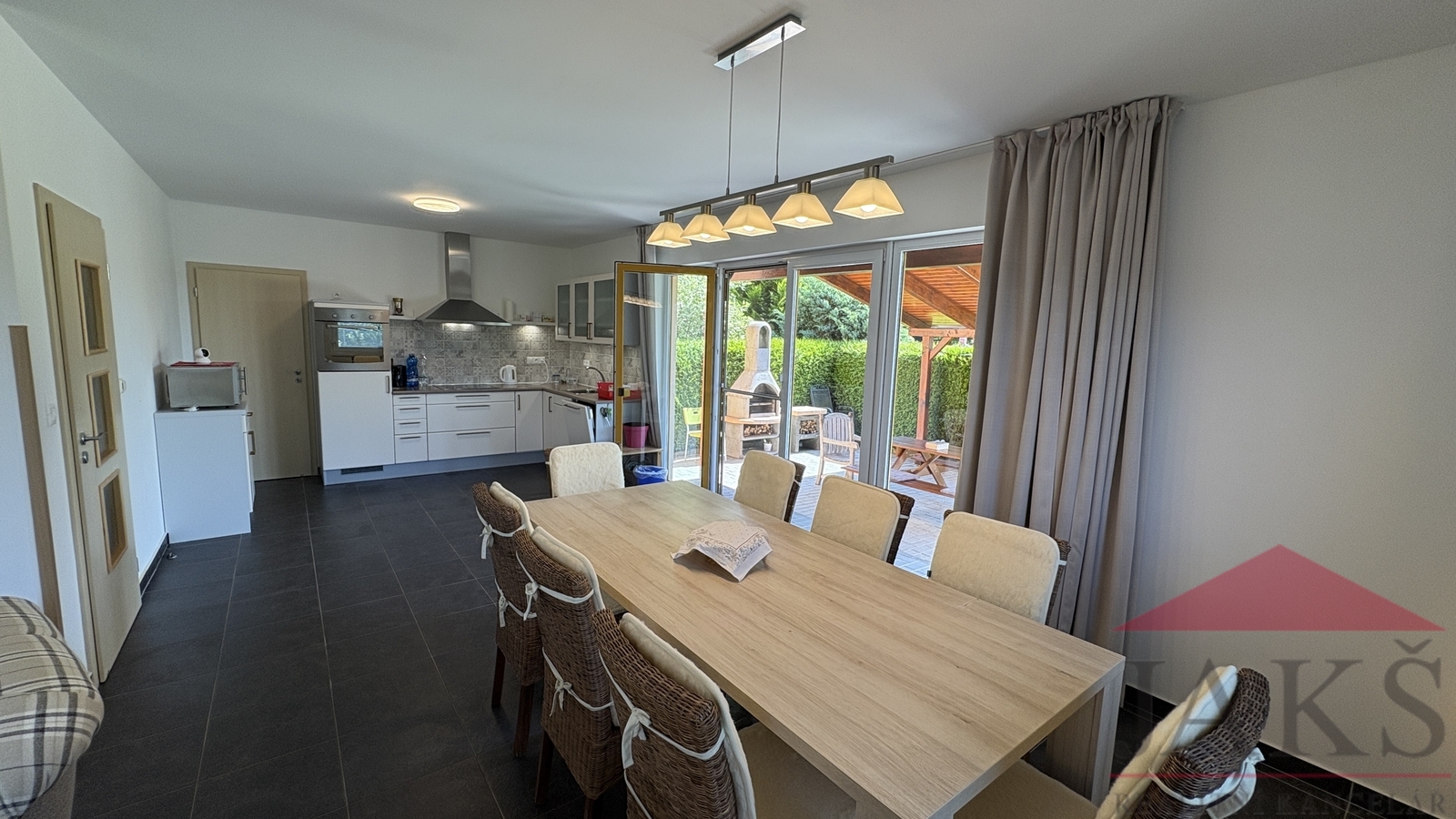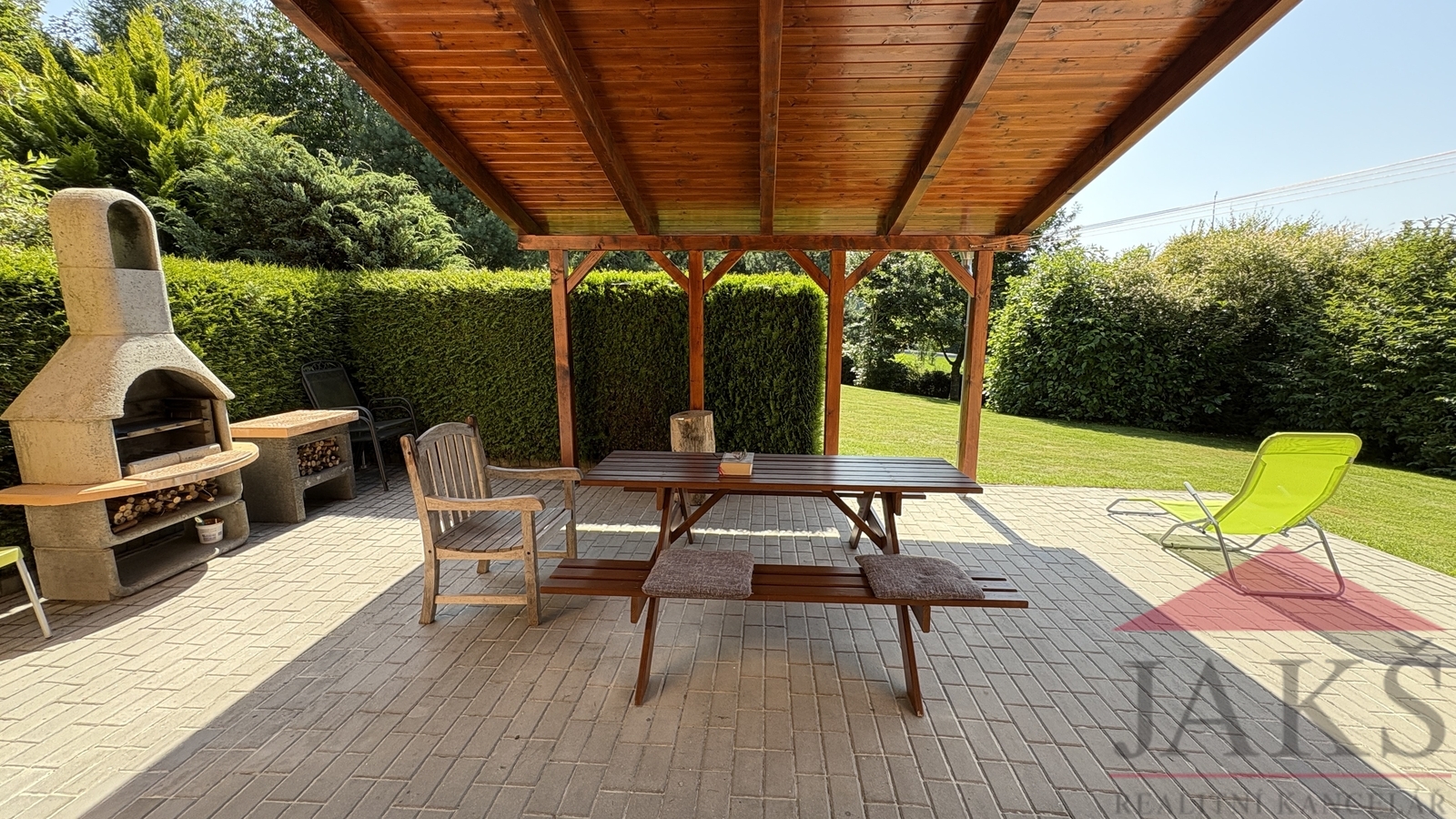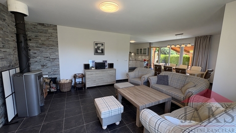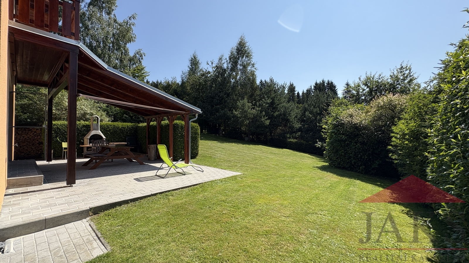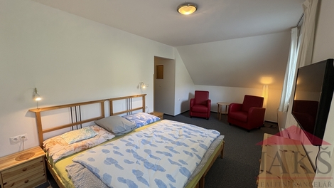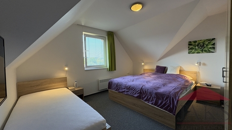 Exkluzivně vám nabízíme na prodej zateplenou dřevostavbu „typu gamma“ rodinného domu (6+kk se zastřešenou terasou; 11 lůžek; 3 koupelny; sauna; podl. pl.: 176 m2; kolaudace 2009) s garáží, 4 parkovacími místy, úžasným výhledem a oplocenou pěstěnou zahradou 934 m2 se vzrostlou okrasnou zelení, zaručující absolutní soukromí, stojící hned vedle areálu Kramolín se sjezdovkou, stezkou v korunách stromů a bobovou dráhou v klidné části Slupečná (850 m.n.m; Villapark Lipno Dreams) na Lipně nad Vltavou, který prošel v r. 2022 zevrubnou renovací (nová fasáda; vydlážděná 4 parkovací stání; zastřešená terasa; renovace balkonů, zábradlí a všech dřev. prvků; kuchyňská linka; ker. dlažba v garáži; kompletní nábytek; krbová kamna; rekultivace zahrady) a je střežen kamerovým systémem. Popis: technická část: garáž (regály) a technická místnost (pračka); 1.NP (81,54 m2): předsíň (věšáky s botníkem), koupelna s finskou saunou (sprch. kout, umyv. se zrcadlem), sam. WC s umyv., ložnice, hala se schodištěm, komora (2x el. boiler), prostorný obývací pokoj 49 m2 s kuchyňským koutem (rohová kuch. linka s vestav. spotřebiči: HV a MV trouba, sklo-ker. deska, lednice, digestoř a myčka), jídelnou, krbovými kamny a vstupem na zastřešenou terasu s posezením a venkovním krbem; 2.NP (80,12 m2): podesta, koupelna (vana, sprch. kout, umyv. se zrcadlem, WC, topný žebřík), ložnice, 2x ložnice s balkonem s dechberoucím výhledem, uzamykatelná hlavní ložnice s vlastní koupelnou (vana, sprch. kout, umyv. se zrcadlem, WC, topný žebřík) s balkonem, šatnou a předsíní (vest. skříň). Movité vybavení vč. nábytku je v ceně. Celkem užitná plocha vč. garáže: 198,29 m2; Podlahová plocha: 176,21 m2; Pozemek celkem: 1.050 m2; Zastavěná plocha a nádvoří: 116 m2; Zahrada: 934 m2; Vymezena živým plotem, mírně svažitá, pěstěná zahrada se zahradním domkem na nářadí, dřevníkem, 2x plast. kompostem, vydlážděným parkovacím místem pro 4 auta a okrasnými křovinami s živým plotem (smrky a túje), zaručující žádané soukromí. Platby: správa 1.200 Kč/měs. + DPH (správa sítí a cesty vč. úklidu sněhu, veř. osvětlení, odvoz TKO, wi-fi internet, TV signál) + spotřeba elektřiny. Voda a odpad: obecní řad; El.: 220/380 V; Vytápění: podlahové (el. rošty) topení v 1.NP a koupelnách; el. přímotopy v ložnicích - vše ovládáno na dálku pomocí aplikace; lokální - krbová kamna na T.P.. TUV: 2x el. boiler; V ceně na přelomu března/dubna se zrealizuje vlastní FVE s 16 panely na střeše s výkonem 7,5 kWh, vlastní baterií (12,4 kWh), virtuální baterií a schváleným připojením do distribuční sítě. Zaujme náročné klienty hledající „chytrou investici“, která vám umožní spojit výnosy s vlastním rekreačním zázemím, díky možnosti uzamčení vlastní části v domě. Perfektní lokalita v klidné části jen cca 300 m vzdálený Skiareál Lipno a cca 1 km je centrum Lipna s množstvím restaurací, kaváren, zábavy a sportovního vyžití pro všechny generace.