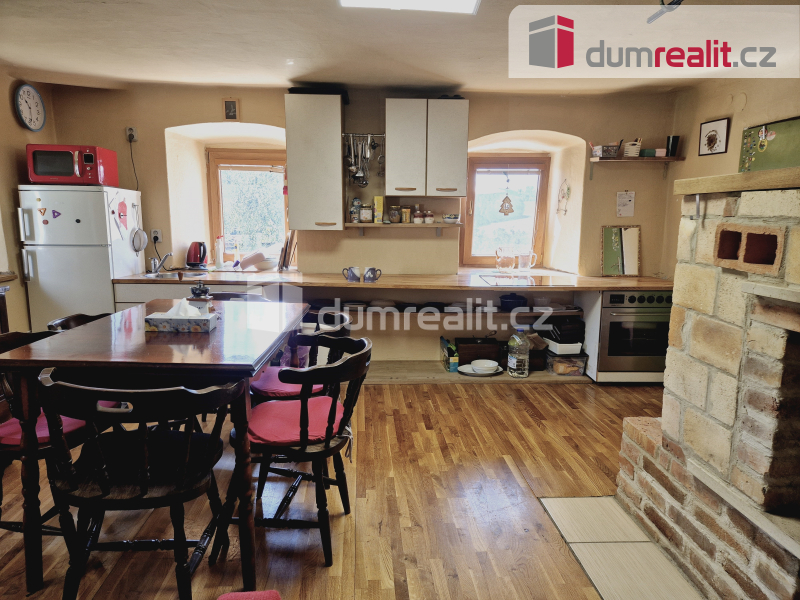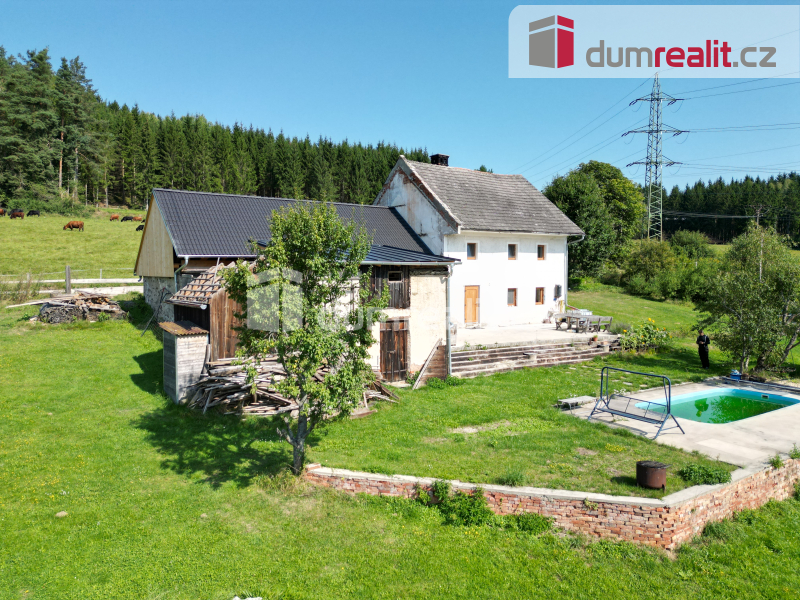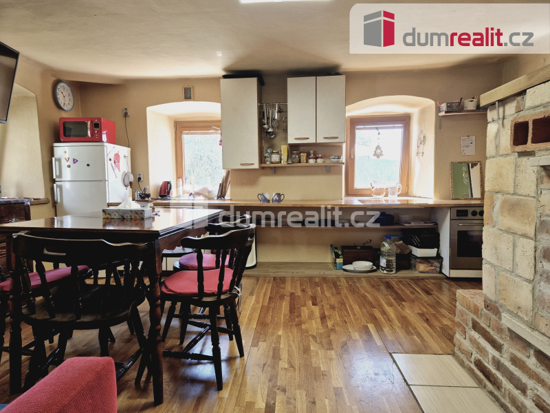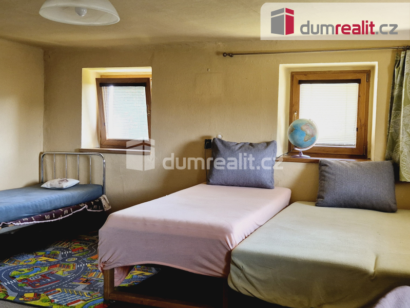 Pokud hledáte kouzelné místo, tzv. na samotě u lesa, mohl by právě vás oslovit rodinný dům/chata na adrese Nahořany 8, nacházející se na jižním svahu vrchu Hrubec (843 m) v Rožmberské vrchovině. Objekt je celoročně obyvatelný, avšak nabízí ještě spoustu prostoru pro tvůrčí činnost. Má základní dispozici 4+kk, přičemž v 1.n.p. nalezneme: ložnici o 9,3 m2, obývací pokoj o 20,8 m2 s kuchyňským koutem a pecí, na které se dá spát, chodbu s přístupem do sklípku, koupelny o 10 m2 se sprchovým koutem, umyvadlem a WC, vytápěnou elektrickým podlahovým topením, a zakryté schodiště do 2.n.p. s pokoji o cca 9,3 m2 a 10 m2, odkud je přístup na půdu. To je východní část. Ve střední je odkládací místnost/sklad o 19 m2 s původní klenbou, přístupná z venku, která však byla v minulosti propojená aktuálně zazděnými dveřmi s obytnou částí. Západní část pak tvoří stodola s novou střechou a menší budova, která však na své zakrytí teprve čeká. Doménou je pak prosluněná terasa o cca 65 m2, pod kterou je níže zapuštěn bazén. Celková plocha jižně svažovitých pozemků je 2.104 m2, z toho je cca 307 m2 zastavěných. Objekt je napojen na elektřinu, vodu za studny a odpad sveden do septiku. Vytápění lokální, tuhými palivy, ohřev vody bojlerem. Komplet foto (58) na stránkách dumrealit.cz/kejsar. Ev. číslo: 652279. Energetický štítek: G
