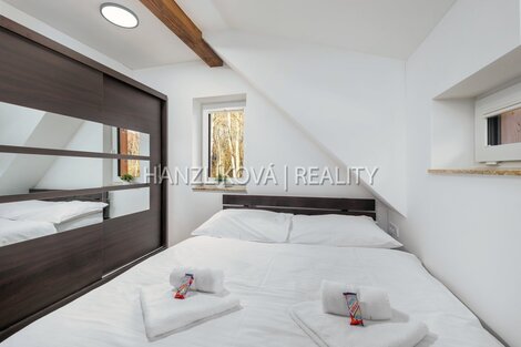 Hledáte místo, kde se snoubí klid šumavské přírody s možnosti aktivního odpočinku v blízkosti Lipenské přehrady? Nabízíme Vám jedinečný rekreační dům - hájenku v obci Pernek, jen pár minut od břehu Lipna. Dům je součástí komorního rekreačního areálu " Venkovské usedlosti Pernek" a byl zkolaudován v roce 2022. Dům stojí na vlastním pozemku o celkové výměře 1381 m2, disponuje užitnou plochou přes 156 m2 a je rozdělen na dvě obytná podlaží. V přízemí se nachází prostorná kuchyně s jídelnou a přímým vstupem na terasu, obývací pokoj s krbem, koupelna a technické zázemí. V podkroví najdete čtyři samostatné ložnice a další koupelnu s WC. Celkově nabízí pohodlné zázemí i pro větší rodinu či rekreační pronájmy. Dům je napojen na el. en. - má vlastní elektrokotel a bojler na ohřev vody, vytápění je podlahové, voda ze společné studny, každý dům má pak svou čističku pitné vody, odpad - septik na vyvážení. Dům byl postaven z kvalitních materiálů a zůstává plně vybaven. Hlavní přednosti : - vlastní pozemek o výměře 1381 m2 - soukromá terasa s možností grilování a posezení - krbová vložka pro útulnou atmosféru v zimních měsících - kvalitní zateplení ( 15 cm minerální vaty) a plastová okna - vlastní elektroměr, elektrokotel a bojler, - dům je kompletně vybaven ( viz fotografie) - 4 parkovací stání přímo u domu - společné zázemí areálu - dětské hřiště, upravené okolí Areál je zasazený do nedotčené přírody, obklopený hlubokými lesy a nabízí naprostý klid a soukromí - ideální prostředí pro odpočinek i rodinnou rekreaci. Hranice pozemku sousedí s chráněnou krajinou oblastní a je zde stavební uzávěra. Jedinečnou atmosféru dotváří malý potůček, který se vine podél pozemku a přináší do prostředí osvěžující nádech a kouzlo horské přírody. Šum vody i zeleně v okolí dělají z tohoto místa ideální útočiště pro odpočinek, rekreaci či rodinné zázemí. Provozní náklady se pohybují kolem 6-8 tis Kč měsíčně. Nemovitost je možné využívat celoročně - ať už jako rodinné rekreační zázemí nebo jako investici s možností pronájmu. Možnost zajištění přes agenturu včetně zajištění úklidu. Lokalita : Pernek je ideálním výchozím bodem pro letní koupání, cykloturistiku či zimní lyžování. V bezprostřední blízkosti se nachází Lipno nad Vltavou s kompletní infrastrukturou ( aquapark, ski areál, stezka korunami stromů, řada restaurací, marina).