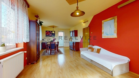 Předmětem prodeje je patrový dvougenerační rodinný dům s velkou zahradou. Nachází se v klidné okrajové části českobudějovické čtvrti Rožnov. K domu náleží užitková zahrada 422 m2s ovocnými stromy, skleníkem a záhony. V zahradě je zděný a částečně podsklepený zahradní domek o 30 m2 k ukládání zahradního nářadí a pod. V přízemí domu jsou 2 samostatné garáže, ze kterých je chodbou přístup do bytu o dispozici 2+1 s podlahovou plochou 55 m2. Byt sestává z obývacího pokoje, ložnice, kuchyně s veškerými spotřebiči, spižírny a koupelny se sprchovým koutem a toaletou. V 1. patře domu je potom mezonetový byt o dispozici 7+1 o 143 m2. Dominantou tohoto bytu je velký obývací pokoj s přístupem na dvě terasy, jak s výhledem do zahrady, tak s výhledem do ulice. Ve spodní části mezonetového bytu jsou dvě prostorné ložnice, malá komora a účelně vybavená kuchyně s veškerými běžnými spotřebiči. Ze společné chodby je přístup do koupelny s rohovou vanou a toaletou. V mezonetové části, přístupné po schodišti z obývacího pokoje, se nachází 2 velké pokoje, další koupelna se sprchovým koutem a toaletou a půda, ze které je možnost v případě potřeby vybudovat další pokoj. Oba byty mají částečně plovoucí podlahy a částečně parkety a dlažbu. Celý dům je kompletně zateplený a všechna jeho okna jsou plastová. Vytápění domu zajišťuje plynový kotel, ohřev vody pak dva bojlery, samostatně pro každý z bytů. Celá zahrada je situována za domem a zajišťuje tak jeho obyvatelům klid a ničím nerušené soukromí. Právě čtvrť Rožnov je vyhledávanou lokalitou pro svoji polohu mezi řekami Malší a Vltavou a pohodlnou dostupností jak do centra města Č. Budějovic, tak i do blízké přírody nebo právě k vodě. Na tuto nemovitost vám rádi pomůžeme zajistit i výhodný způsob pro její financování. Bližší informace včetně domluvení fyzické prohlídky domu vám zajistí makléř této jedinečné nabídky.