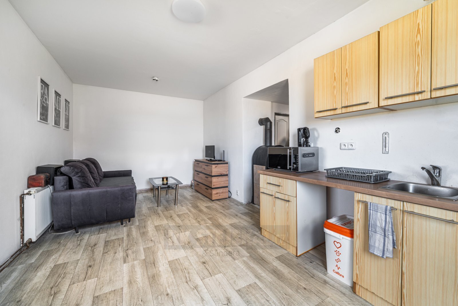 Nabízíme vám minimalistický rodinný dům o dispozici 2+kk v těsné blízkosti malebné obce Opařany, která se nachází pouhých 15 kilometrů od města Tábor. Tento dům vám poskytne dostatek prostoru jak pro bydlení, tak pro případnou občasnou rekreaci. Dispozice stavby: Stavba stojí na samostatném pozemku mimo zástavbu obce, což vám poskytne dostatek soukromí. Před nemovitostí je upravena plocha pro pohodlné parkování až dvou osobních aut. Jsou zde instalované nové vchodové dveře, které omezují tepelné ztráty během zimních měsíců. Z chodby se dostanete do ložnice, která je dostatečně prostorná pro umístěný dvoulůžkové postele a najdete zde velkou šatní skříň. Za druhými dveřmi poté najdete koupelnu, která je vybavena vanou se sprchou, toaletou a umyvadlem, pod kterým naleznete dostatek prostoru pro umístění pračky. V chodbě jsou umístěna krbová kamna, které pomocí výměníku zajišťují vytápění nemovitosti. Dominantou domu je poté prostorný obytný prostor s kuchyní, kde naleznete kuchyňský kout s dostatkem úložného prostoru a elektrickým sporákem s troubou. Z obývacího prostoru lze prosklenými dveřmi vstoupit na zpevněnou dřevěnou terasu, kterou zle případně odstranit. V pravé části nemovitosti dále najdete plechovou garáž, kterou lze využít jako úložný prostor. Technické řešení nemovitosti: Dům je postaven z škvárobetonových tvárnic. V průběhu 5 let zde byla provedena postupná rekonstrukce. Je zde zavedena elektřina, elektrické rozvody jsou měděné. Odvod odpadu je řešen vyvážecí jímkou, která se nachází na pozemku nemovitosti. Rozvody vody v nemovitosti jsou plastové. Ohřev vody zajišťuje boiler. Střecha je izolována vatou proti tepelným ztrátám. V obytném prostoru je vytvořen podhled, kde je vyhotovena příprava na umístění rekuperace. Internet je do nemovitosti přenášen vzduchem. V nemovitosti byla dále instalována nová plastová okna. Lokalita: Nemovitost kombinuje klidné prostředí v těsné blízkosti obce Opařany a pohodlnou dostupnost do většího Milevska a Tábora. V Opařanech najdete veškerou potřebnou občanskou vybavenost. Pro prohlídku neváhejte kontaktovat makléře.