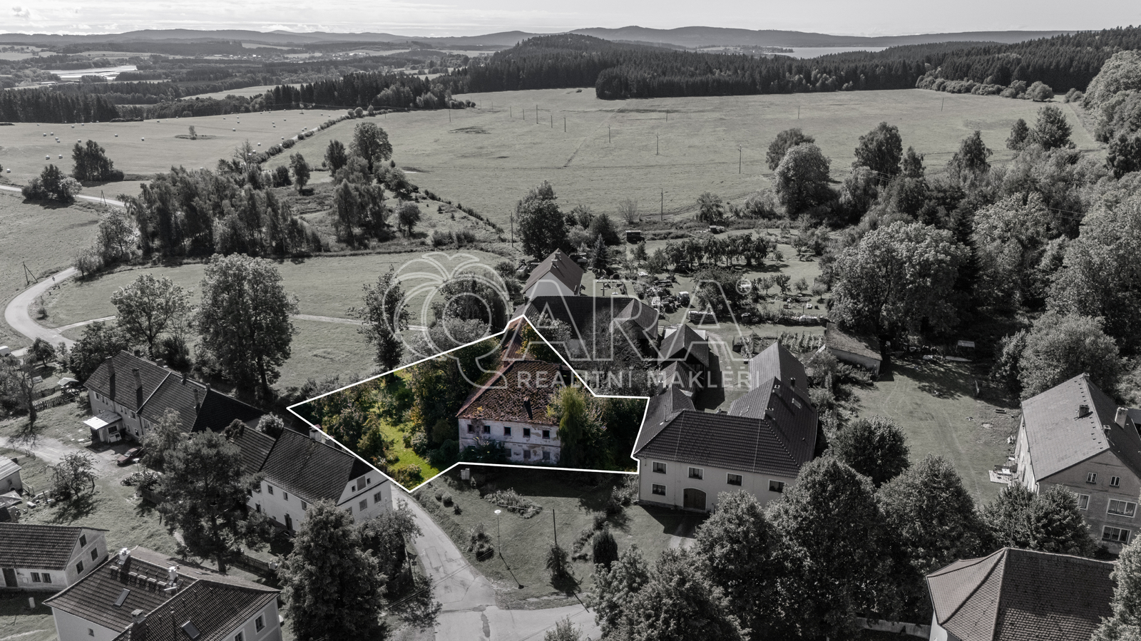 Na prodej zemědělská usedlost ve stavu před rekonstrukcí, umístěna přímo na návsi malé šumavské osady Hodňov, v těsném sousedství kostela Nejsvětější Trojice. Tato usedlost byla historicky rozdělena na dvě poloviny. Součástí prodeje je stavba před rekonstrukcí, uzavřený dvůr a navazující pozemky: • 617 m2, na kterém stojí stavba a dvůr, • 786 m2 pozemku, který k usedlosti přináleží. Usedlost je ideálním základem pro ty, kdo hledají místo s charakterem, kde mohou skloubit bydlení, hospodaření nebo drobné podnikání. Podle územního plánu je zde možné stavět a obnovovat rodinné usedlosti v tradičním duchu - tedy propojení obytné části s hospodářským zázemím, zahradou, dílnou či agroturistikou. Infrastruktura • Vodovod: napojení na obecní vodovod • Kanalizace: obecní splašková kanalizace je svedena do místní čistírny odpadních vod • Elektřina: objekt byl připojen, nyní má pouze odpojený elektroměr O lokalitě • Hodňov je malebná část města Horní Planá (okres Český Krumlov), obklopená loukami, lesy a rybníky. • Oblast je vyhledávaná pro rekreaci, cykloturistiku i pěší turistiku - v okolí vede řada cyklotras a turistických cest. • V obci i okolí se rozvíjí ubytování a agroturistika, díky čemuž může mít usedlost do budoucna i podnikatelský potenciál. • V nedaleké Horní Plané (cca 5 km) najdete kompletní občanskou vybavenost a břehy Lipenské přehrady - jednoho z nejatraktivnějších rekreačních míst v Česku.