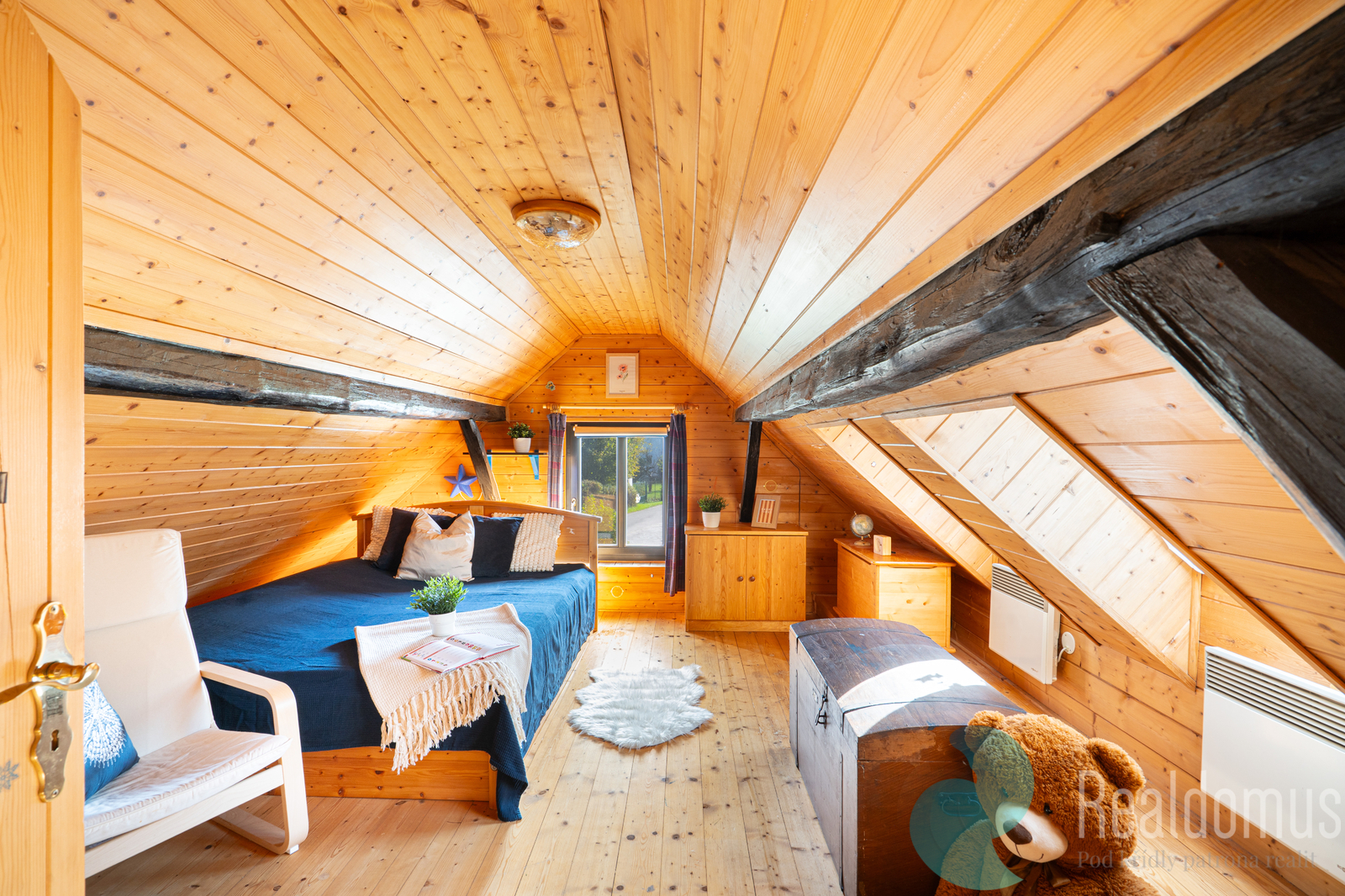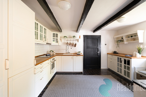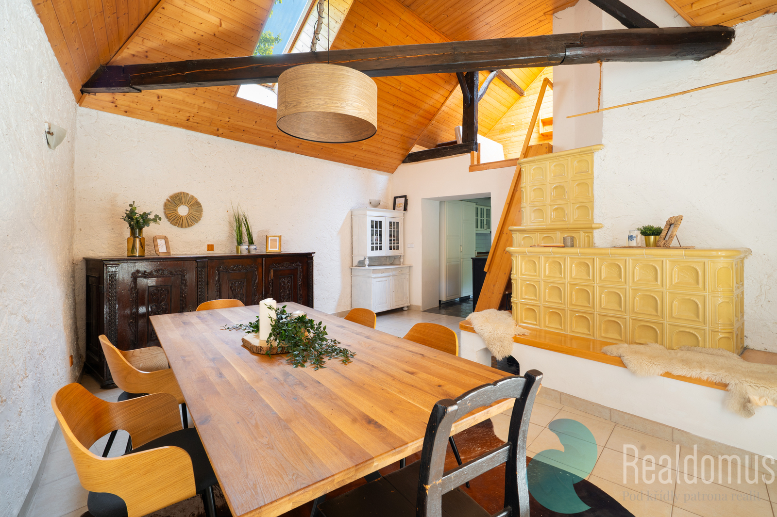 Tento dům s dispozicí 5+1 a užitnou plochou přes 180 m2 se nachází v klidné lokalitě na okraji obce Klenovice u Soběslavi. K domu náleží prostorná "hospodářská" budova s garáží, skladem, saunou, prádelnou a krytou terasou, a krytý pozemek o velikosti 938 m2, který poskytuje dostatek soukromí pro odpočinek i zábavu. K dispozici je i krytý bazén. Dům je v přední části roubený. Celkové pojetí je blízké tradičním domům stavěným v Čechách v dřívějších dobách a je v místě unikátní. Okna a vstupní dveře jsou nové. Interiér domu je kombinací tradičních prvků jako např. nádherných kachlových kamen v obývací části nebo tradičních kamen v kuchyni a moderních prvků - rekonstruovaná koupelna, obložení dřevem. Nemovitost je určena k celoročnímu bydlení - je vedena jako rodinný dům. Dispozice domu je bohatě dimenzovaná i pro větší rodinu. Kromě velkého prostoru obýváku s jídelnou se zde nachází i prostorná kuchyně, 2 dětské pokoje, ložnice, herna a pokoj sloužící jako čítárna/odpočívárna. Umístění domu je v oddělené části obce Klenovice "U Hasíka". Nachází se v bezprostředním sousedství lesa a 200 m na vrchu nad řekou Lužnicí, což dává místu jedinečnou romantickou duši. Veškerá občanská vybavenost se nachází v přilehlé Soběslavi. Velice dobrá dopravní dostupnost do Českých Budějovic nebo Prahy po dálnici D3. Přijďte se přesvědčit osobně. Uvedené výměry jsou orientační. V případě více zájemců bude nemovitost prodána nejlepší nabídce a majitel si vyhrazuje právo vybrat kupujícího na základě jim zvolených kritérií. Veškeré zveřejněné údaje v tomto inzerátu mají pouze informativní charakter.