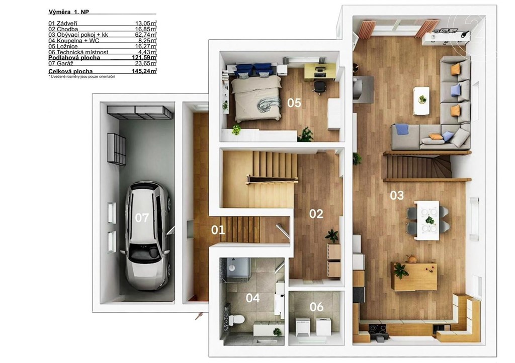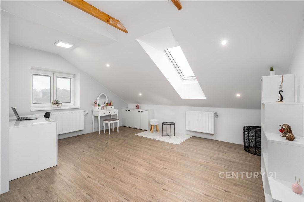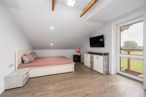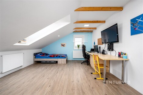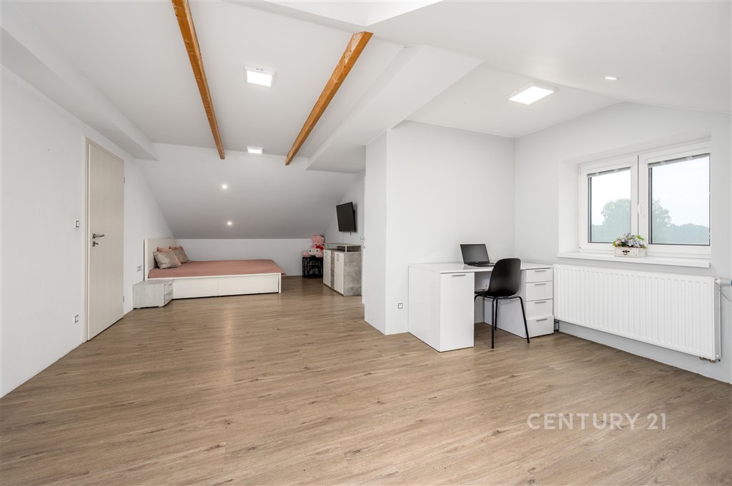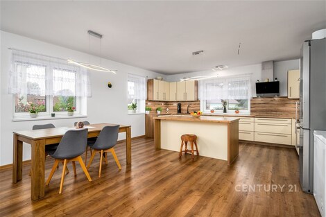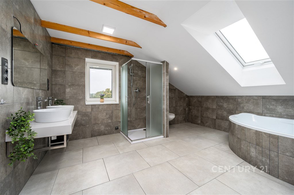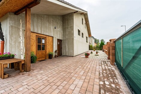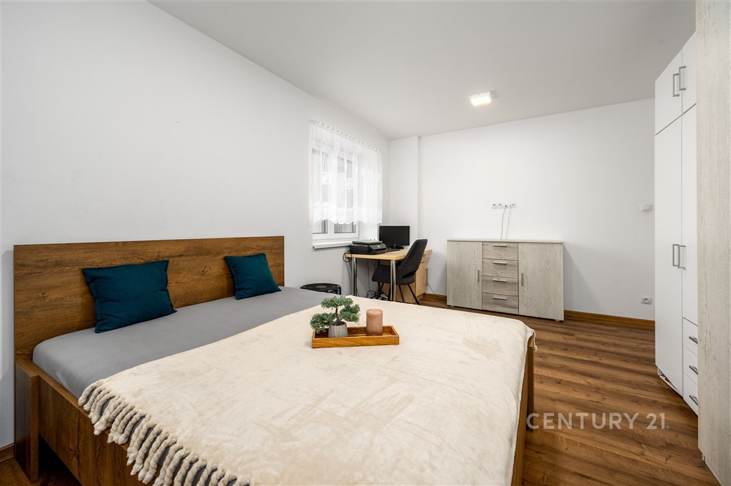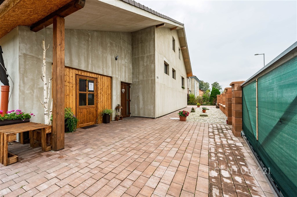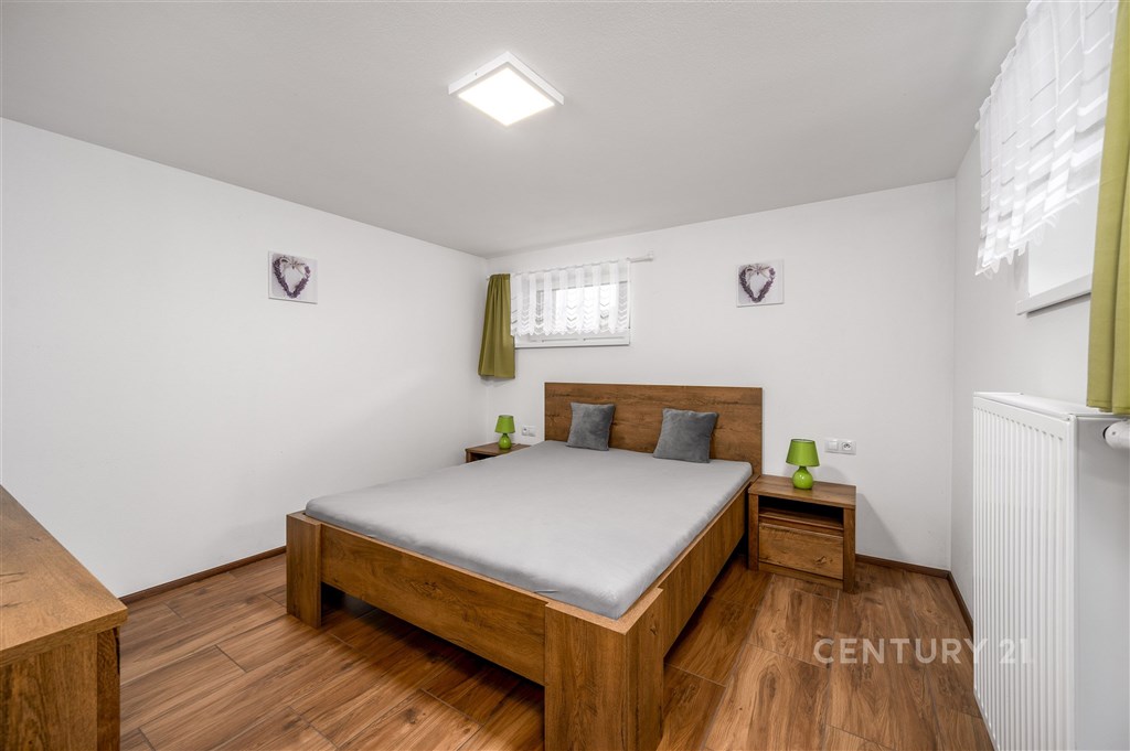 Nabízíme dům o velikosti 4+kk v klidné části obce Lužnice. V suterénu domu se nachází ještě apartmán velikosti 2+kk s vlastním vchodem, který je využíván jako ubytovací zařízení. Roční příjem z jeho provozování dosahuje až 250 000 Kč, a lze ho kromě jiného použít třeba i ke splácení hypotéky. V prvním patře se nachází kuchyně s obývacím pokojem, ložnice, technická místnost a koupelna se sprchovým koutem a WC. Ve druhém patře jsou dva pokoje a koupelna s rohovou vanou a WC. Vytápění domu je zajištěno plynovým kotlem s výměníkem na teplou vodu. Je možné přitopit si také litinovými krbovými kamny. Topení a osvětlení je možné ovládat na dálku přes mobilní aplikaci Loxone. Na domě je provedena příprava na tepelné čerpadlo, fotovoltaické panely a solární ohřev vody. Dešťová voda je svedena do retenční nádrže o objemu 7.5 m3. Na zahradu i okolo domu jsou rozvody pro její využití. Na pozemku je též vlastní studna s pitnou vodou. Zateplení domu je provedeno minerální vatou o síle 10 cm. Součástí domu je garáž a kryté parkovací stání pro dva vozy, kde je možné dobíjení elektromobilu. K venkovnímu posezení poslouží pergola s výhledem do krajiny, kde dle územního plánu není možná žádná další zástavba. Je to ideální místo pro rodinu, která hledá klid a zároveň výbornou dostupnost do města Třeboně.