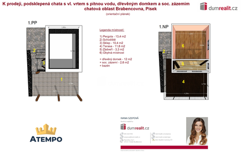 Dumrealit.cz Vám zprostředkuje prodej podsklepené chaty s terasou s výhledem na město, pergolou, vlastním vrtem s pitnou vodu, elektřinou a pozemkem o celkové výměře 335 m2 na okraji klidné, uzavřené, oplocené a zamčené zahrádkářské kolonie Brabencovna, jen 5 minut od centra Písku. Součástí prodeje je pozemek parc.č. 1402/28 o výměře 335 m2 a pozemk parc. č. st. 4473 o výměře 24 m2, to vše je zapsané na LV č. 16160 v katastrálním území Písek. Na pozemku se nacházejí 2 dřevěné chaty: 1) obytná 3x4m; 2) se sociálním zázemím (chemické WC a sprcha s ohřevem vody). Součástí prodeje je také bazén. Objekt je připojen na elektřinu. Hloubka vrtu činí 27 metrů. Místo je ideální pro rekreaci a zahrádkářské využití s krásným výhledem na město Písek. Více informací poskytne realitní makléřka Ivana Szepová z realitní kanceláře A TEMPO fungující pod ochrannou známkou dumrealit.cz. Ev. číslo: 652877. Energetický štítek: G