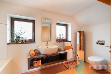 Ve výhradním zastoupení majitele vám představujeme krásnou nemovitost, která je charakterizována nadstandardní kvalitou provedení stavby, nádherným výhledem, vzrostlou zahradou, soukromím a klidem. Stylová vila na Srubci z roku 2006 si stále drží svůj jedinečný šarm. Nemovitost se nachází v klidné (slepé) ulici na Srubci na pozemku o rozloze 720 m2 a poskytuje 196 m2 užitné plochy (rozdělené do 2 pater), nádhernou vzrostlou zahradu s terasami a posezením a 2 parkovací místa. Dům je v současné chvíli rozdělen na 2 bytové jednotky. Hlavní bytová jednotka 3kk s velkorysou užitnou plochou 159 m2 se skládá z nádherné prosvětlené hlavní místnosti s kuchyňským koutem o rozloze 56 m2, dvou velkých ložnic (31 m2 a 27 m2), dvou koupelen (7 m2 a 6 m2) a technické místnosti. Druhá bytová jednotka 1kk má obytnou místnost s kuchyňským koutem (31 m2) a koupelnu 6 m2. Oba byty mají společnou chodbu a mohou být součástí jedné bytové jednotky, kdy jedna z ložnic bude mít vlastní koupenu s toaletou. Velký potenciál má toto dělení pro soužití více generací, či odrostlejší děti, které mohou mít v domě své samostatné zázemí. Technické parametry domu i kvalita provedení stavby zaručují bezstarostný život na nádherném místě s výhledem na České Budějovice a okolí. Dům je napojen na městskou kanalizaci a vodovod, na zahradě je i studna, z níž lze čerpat užitkovou vodu. Vytápění domu je zajištěno elektrokotlem, v přízemí je podlahové topení, v patře pak radiátory. V hlavní obytné místnosti jsou krbová kamna, která lze použít k vytápění hlavní bytové jednotky a dotváří též nádhernou atmosféru tohoto stylového prostoru. Zveme vás k návštěvě tohoto kouzelného a velmi osobitého prostoru a jsme si jisti, že na vás zapůsobí stejně, jako zapůsobil na nás. K domluvení termínu prohlídky kontaktujte prosím makléřku této nabídky. Uvedené výměry jsou orientační. V případě více zájemců bude nemovitost prodána nejlepší nabídce a majitel si vyhrazuje právo vybrat kupujícího na základě jím zvolených kritérií. Veškeré zveřejněné údaje v tomto inzerátu mají pouze informativní charakter.