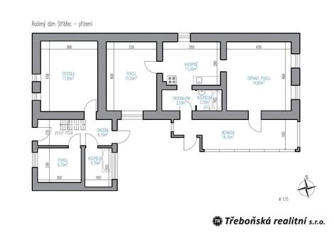 Ve výhradním zastoupení majitele nabízíme k prodeji rodinný dům v obci Stříbřec na Třeboňsku, která se od samotné Třeboně nachází přibližně 11 km daleko. Dům se nachází v širším centu obce a představuje tak ideální místo pro klidné bydlení nebo rekreaci. Jedná se o nepodsklepený dům, jehož celková zastavěná plocha včetně dvorku a přilehlých dřevníků je 197 m2, samotný dům má přibližnou plochu 135 m. Celková výměra včetně zahrady je 1 149 m2. Dům má přibližné stáří 190 let a je tedy možné provést rekonstrukci dle svých představ. Dispozice domu je 2+1. Po vstupu do domu se nachází prostorná veranda, ze které se dále postupuje rovně do kuchyně a vlevo do ložnice, vpravo je pak obývací pokoj. Před kuchyní se nachází koupelna s WC a je zde umístěn kotel na tuhá paliva. Ze dvora je vstup do původní prádelny a 2 prostorů, které slouží jako skladovací prostory a dílna a vpravo pak další skladovací prostor, původně chlév. Součástí prodávaného domu je i krásná oplocená zahrada o výměře 952 m2 s hezkým výhledem do okolní přírody, která poskytuje dostatek klidu a nerušeného soukromí. V zadní části zahrady se nachází zděná garáž a původní sklepní prostor. V přední části zahrady po výstupu z průjezdu je umístěn další dřevník (kůlna). Dům je napojen na elektřinu, obecní vodu a obecní kanalizace. Na zahradě je navíc vlastní studna. Současné vytápění domu je pomocí kamen na tuhá paliva. Prodávaný dům je vhodný jak pro trvalé bydlení, tak pro rodinnou rekreaci nebo vzhledem k umístění i k podnikání v oblasti ubytovacích služeb. Energetická třída G je uvedena dočasně, vzhledem k novele č. 406/2000 Sb. o hospodaření s energií. Po dodání energetického štítku bude uvedena skutečná energetická třída této nemovitosti. Prohlídku prodávané nemovitosti je možné domluvit na uvedeném telefonním čísle nebo e-mailu. Případné financování nemovitosti hypotečním úvěrem Vám případně rádi zajistíme. Třeboňská realitní s.r.o. PRODÁVÁME REALITY. REÁLNĚ. <a href="https://www.eurobydleni.cz/pozemky/stavebni-pozemek-bydleni/praha-5/obec-reporyje/prodej/"><strong>Prodej stavebního pozemku Praha 5, Řeporyje</strong></a>
