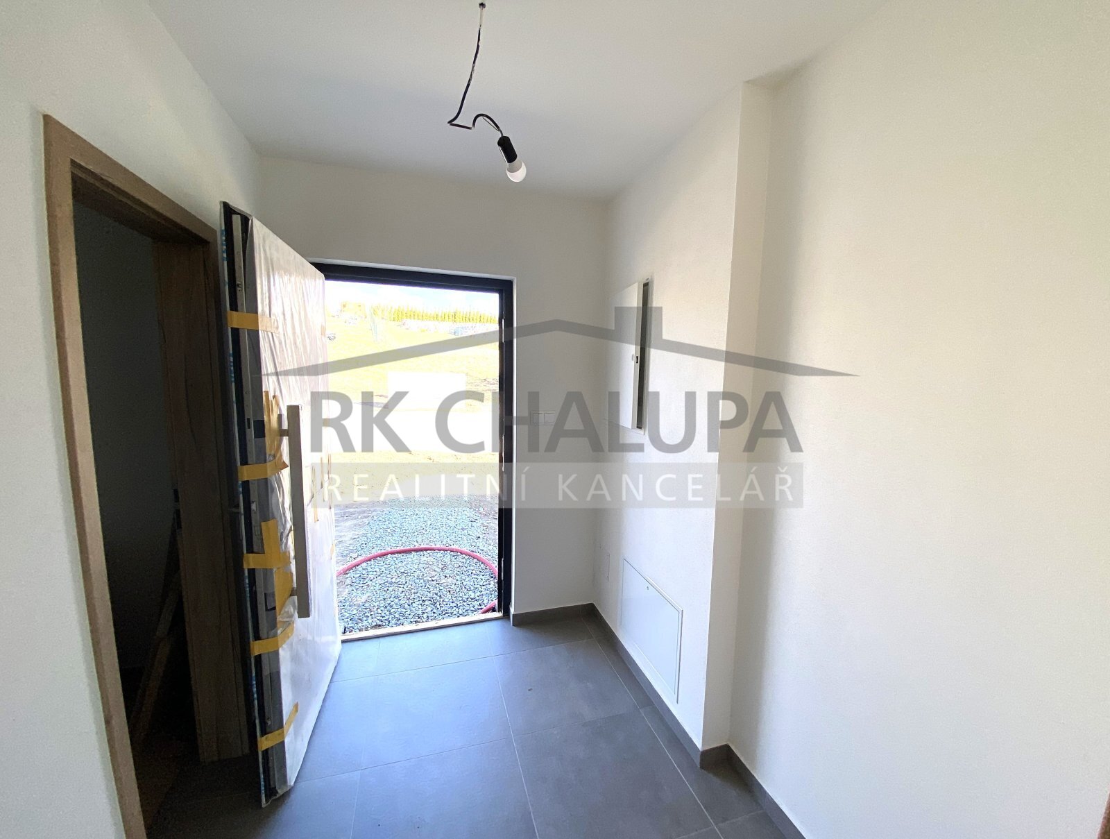Nabízíme Vám k prodeji právě dokončenou novostavbu zděného nízkoenergetického rodinného domu, s dispozicí 4+1, na západním okraji obce Hosín, u Českých Budějovic. Zastavěná plocha 114 m2. Celkový pozemek o výměře 752 m2, jižní svah, terén vyrovnaný. Vnitřní dispozice domu zahrnuje hlavní obývací místnost s jídelnou, s výstupem na jihozápadní terasu s krásným výhledem na Kleť, dále krbový obložený komín s přívodem vzduchu. Kuchyně je již nainstalována, kompletně vybavena, samostatný mrazák, výstup na terasu. Dva neprůchozí dětské pokoje. Ložnice prostorná s výklenkem na vestavnou skříň. Na chodbě výstup na půdu k úložnému prostoru, pochozí stav. Samostatné WC s umyvadlem. Koupelna s 2. WC, sprcha se skleněnými dveřmi, prostor na pračku, okno, otopný žebřík. V technické místnosti se šatnou i umístění plynového kondenzačního kotle se zásobníkem na teplou vodu. Vytápění celopodlahové. Okna jsou v provedení "trojsklo". Celý objekt vybaven venkovními žaluziemi s dálkovým ovládáním nebo přes aplikaci. Kanalizace obecní. Vnitřní dokončení, tj. sanita, obklady, dlažba, podl. krytiny, parapety, obložky, již kompletně dokončeno. Zastávka příměstské dopravy na návsi, ČD v dosahu, nájezd na dálnici po 3 km. Autem 10 min. do centra města. Videoprohlídku zhlédnete na našich webových stránkách.