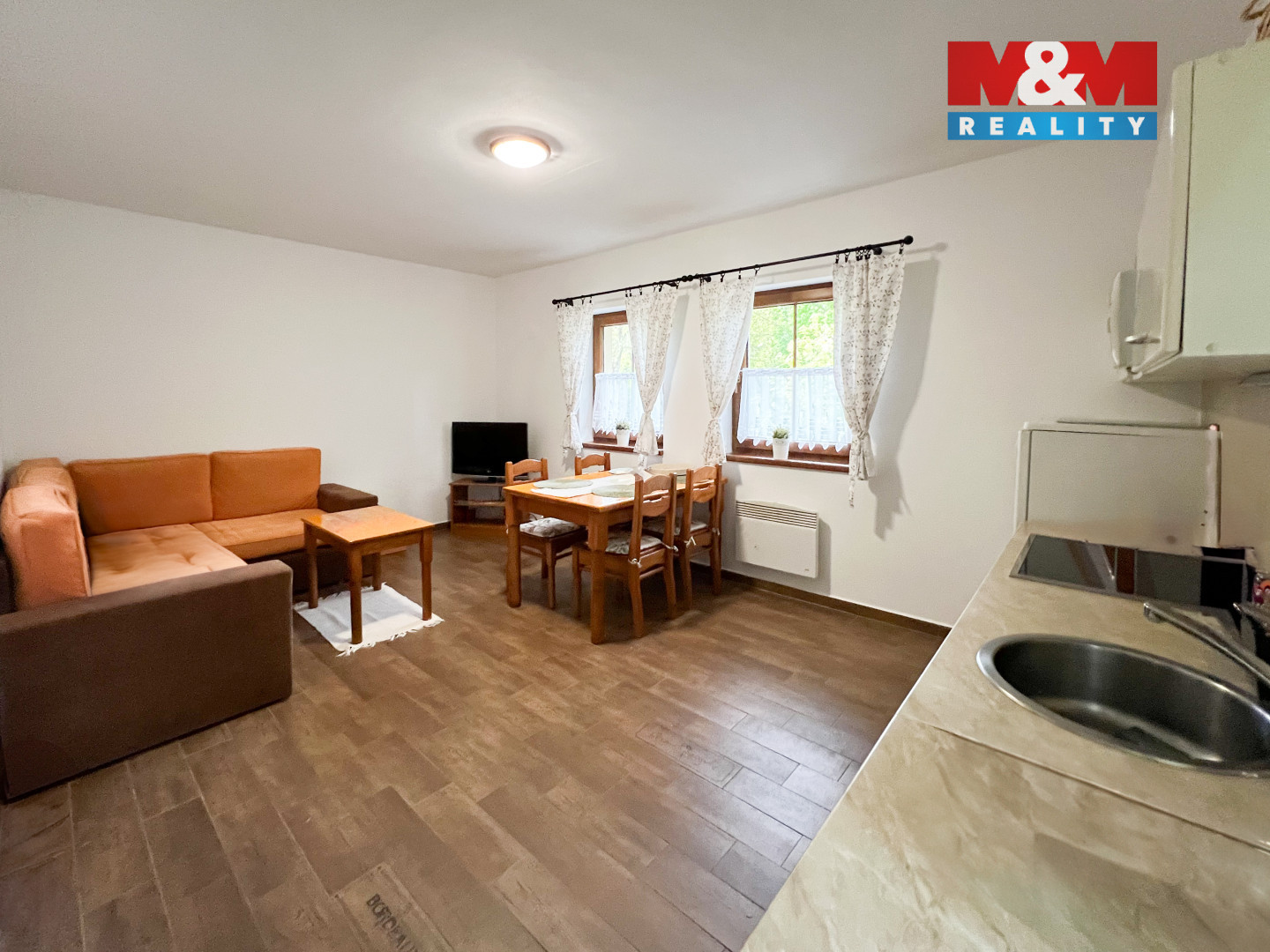 Nově nabízíme luxusní apartmánový dům na Šumavě - klid, příroda a skvělá investice v jednom! Hledáte místo, kde se snoubí soukromí, klid a šumavská příroda? Nabízíme ke koupi výjimečný apartmánový dům v malebné části obce České Žleby - ideální pro podnikání v cestovním ruchu nebo pro vícegenerační bydlení. Cihlový dům s užitnou plochou 254 m2 stojí na prostorném pozemku o rozloze 1535 m2 na polosamotě. Najdete zde 4 vybavené samostatné apartmány v perfektním technickém stavu, připravené k okamžitému provozu nebo nastěhování. Na pozemku stojí zahradní domek pro ukládání kol, lyží a dětské hřiště s posezením a venkovních grilem. V současné době jsou 3 apartmány dlouhodobě pronajaty. Skvělá dostupnost z Lenory, či hraničního přechodu Strážný s krásami Národního parku Šumava na dosah ruky, cyklotrasy, turistika, běžky - to vše v bezprostředním okolí. Nemovitost nevyžaduje žádné další investice - stačí převzít klíče a začít si plnit svůj šumavský sen