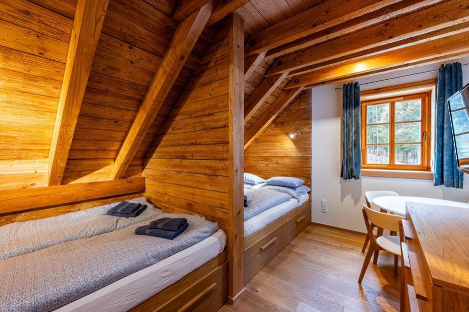 Prodej kompletně zařízené stylové roubenky 6+1 (194 m2), která je momentálně úspěšně pronajímána na krátkodobé pobyty s velmi vysokým výnosem, vítěz AMAZING PLACES v kategorii roubenky a v kategorii design a architektura 2024. Skvělá investiční příležitost, možnost přenechání kompletního fungujícího podnikání se zavedenou klientelou včetně značky Roubenka Kamennka a budoucích zarezervovaných pobytů. Roubenka je umístěná na velmi klidném a kouzelném místě přímo u lesa v obci Kamenná Lhota u Borotína v okrese Tábor na pozemku (1001 m2) s dokonalým koupacím jezírkem se slanou vodou, novou finskou saunou s odpočívárnou, vířivkou a dvěma terasami. Díky naprosto precizní výstavbě se smyslem pro detail, vzniklo dokonalé místo pro rekreaci na klidném místě obklopeném lesy. Lze ji samozřejmě využít i pro celoroční bydlení. Okolí roubenky vybízí k aktivnímu sportování, ať už díky přilehlým turistickým trasám, cyklotrasám, či skiareálu a bike parku Monínec. Dispozice chalupy zahrnuje tři podlaží a obytnou půdu. 1. PP (38 m2) - garáž, technická místnost, toaleta, 1 . NP (91 m2) - zádveří, toaleta, koupelna, spíž, chodba, kuchyně, obývací pokoj s jídelním koutem a výklenkem, terasa, balkon, 2. NP (65 m2) - chodba, čtyři ložnice, dvě koupelny s toaletou, půda - otevřený prostor obytné pochozí půdy. Kompletní nadstandardní vybavení (viz. fotodokumentace) je součástí prodejní ceny. Samostatně stojící chalupa s dřevěným plotem má obdélníkový tvar o rozměrech 8,6 m x 9,9 m s přístavbou na severní straně o rozměrech 8,4 m x 2,2 m. Na výstavbu roubené chalupy byly použity strojně opracované masivní profily ze smrkového dřeva, které dodávají stavbě přírodní a ekologický vzhled. Přístup k pozemku je zajištěn ze stávající obecní komunikace, pozemek je kompletně oplocen dřevěným plotem. Dřevěná okna s izolačním dvojsklem, podlahy jsou v 1. PP a v 1. NP řešeny dlažbou, ve 2. NP a na půdě je položena dřevěná plovoucí podlaha. Vytápění je v 1. NP a 2. NP zajištěno elektrickým podlahovým vytápěním a krbem kachlových kamen se dvěma topeništi na tuhá paliva, v 1. PP jsou dva radiátory. Ohřev vody zajišťuje dvoukomorový bojler o objemu 140 litrů. Přilehlá terasa je zastřešená s venkovní kuchyní a pohodlným posezením. Druhá terasa se zastřešeným plynovým grilem a ohništěm s dřevěnými špalky na sezení je situována vedle vstupní brány. Místo je velmi klidné, přímo sousedící s lesem a láká nejen krásnou okolní krajinou, ale také s možností využití klidné relaxace v kombinaci s aktivním odpočinkem, turisticky zajímavém okolí. V zimě je možné využívat ski areál Monínec. ID nemovitosti APE0174-0002. <a href="https://www.eurobydleni.cz/komercni-nemovitosti/obchodni-prostor/tabor/obec-borotin/prodej/"><strong>Prodej obchodních prostor Borotín</strong></a>