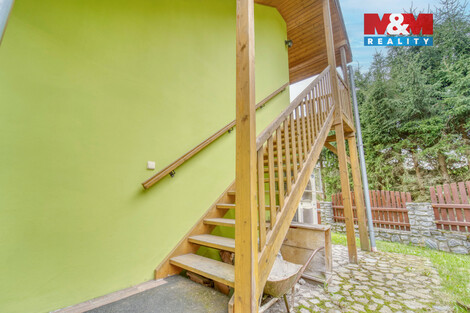 Na prodej rodinný dům v malebné obci Plešovice nedaleko Českého Krumlova. Tento dům o užitné ploše 154 m2 je zasazen na polosamotě, zajišťuje klid a soukromí. Na pozemku rozloze 300 m2 najdete vše potřebné pro pohodlné bydlení. Dům je rozdělen na dvě nadzemní podlaží. V přízemí se nachází vstupní chodba, prostorná kuchyně s jídelnou, obývací pokoj s přístupem na terasu, ložnice, koupelna se sprchovým koutem, samostatná toaleta a technická místnost s vlastním vchodem. První patro je rozděleno na dva apartmány, které lze pronajímat, nebo využít k dvougeneračnímu bydlení. Vytápění je zajištěno tepelným čerpadlem a elektrokotlem, teplou vodu dodává bojler. Nemovitost je ve velmi dobrém stavu a nabízí ideální příležitost pro klidné rodinné bydlení či investiční záměr.