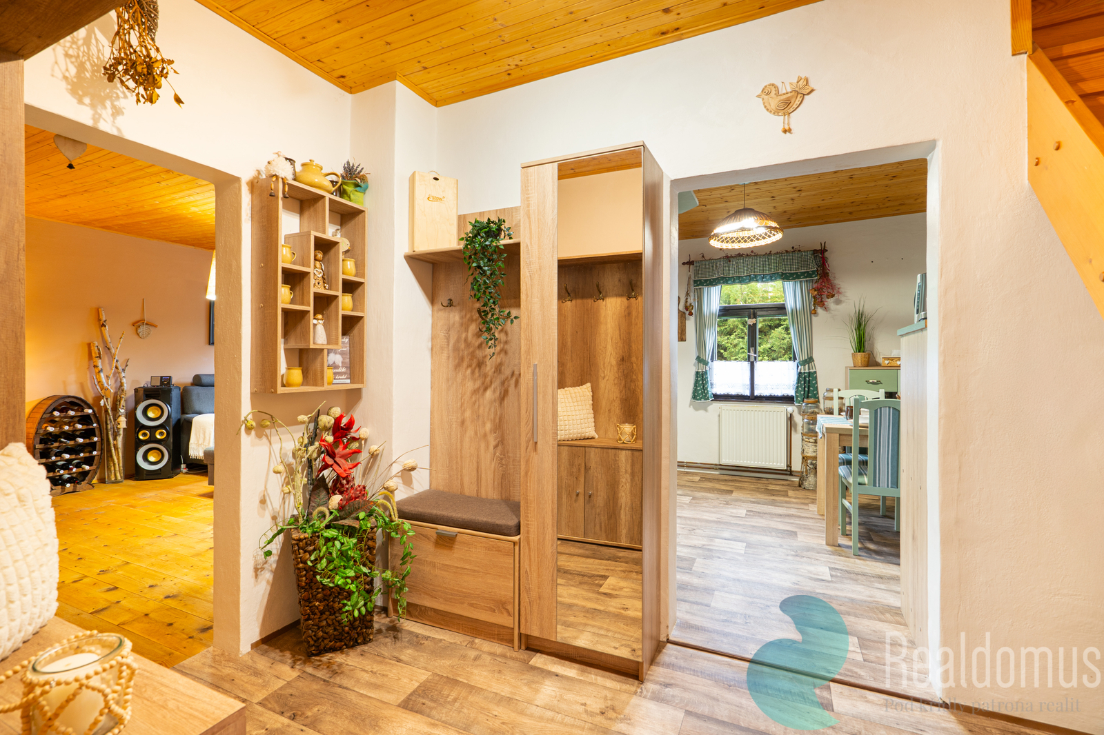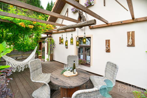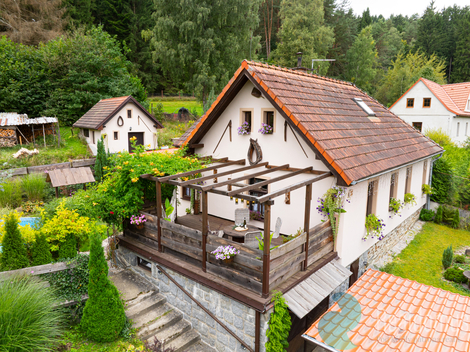 Nabízím Vám ve výhradním zastoupení majitele prodej rodinného domu na klidném okraji obce Nahořany, nedaleko Českého Krumlova. Dům o dispozici 4+1 nabízí krytou verandu, útulnou terasu a rozlehlý pozemek, který poskytuje dostatek soukromí a prostor pro odpočinek i aktivní trávení volného času. Pečlivě udržovaná zahrada s menším jezírkem a několika příjemnými zákoutími je ideálním místem pro relaxaci či rodinné posezení. Součástí nemovitosti je také samostatná dílna, která potěší každého kutila nebo tvořivého ducha. Dům je dispozičně řešen tak, aby poskytoval komfortní a praktické bydlení. V přízemí se nachází zastřešená veranda se vstupní chodbou, kuchyně, prostorný obývací pokoj s krbovými kamny, pokoj pro hosty, koupelna s vanou a WC, technická místnost a komora. Toto uspořádání umožňuje pohodlné každodenní fungování domácnosti a dostatek úložných prostor. V podkroví domu se nachází galerie, další pokoj, ložnice s lodžií a samostatné WC, což zajišťuje soukromí i komfort pro všechny členy rodiny. Nemovitost nabízí řadu praktických i estetických výhod. Udržovaná zahrada s vlastní studnou, menším jezírkem a bazénem je ideální pro relaxaci i volnočasové aktivity. Samostatná zděná dílna poskytuje prostor pro kutily nebo hobby činnosti. K dispozici je garáž, kryté parkovací stání a sklepní prostory, krytá veranda a terasa zase nabízejí příjemné místo k posezení. Nízké provozní náklady zajišťují ekonomické a komfortní bydlení. Neváhejte a přijďte se přesvědčit, že tento dům může být Vaším novým domovem. Pro více informací a domluvení prohlídky mě neváhejte kontaktovat, rád Vám dům ukážu osobně. Uvedené výměry jsou orientační. V případě více zájemců bude nemovitost prodána nejlepší nabídce, přičemž majitel si vyhrazuje právo výběru kupujícího dle vlastních kritérií. Veškeré zveřejněné údaje mají pouze informativní charakter.