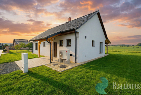Představte si rána, kdy otevřete oči a první, co uvidíte, je klidná zahrada, světlo protékající skrz okna a ticho, které vás obklopuje. Tento krásný nový bungalov 3+kk s podlahovou plochou 82 m2 je připraven stát se vaším domovem - místem pro rodinné chvíle, odpočinek i každodenní pohodu. Elegantní jednopodlažní dispozice je zcela bezbariérová, což zajišťuje komfortní a bezpečné bydlení pro mladé rodiny i starší páry, pro které je důležitý komfort bez schodů. Tato moderní novostavba se nachází v klidné části obce Želeč u Tábora s krásnými výhledy do okolí. Výhodou této obce je dobrá občanská vybavenost - je zde základní i mateřská škola, lékař, obchod a dobré spojení do Tábora i napojení na nedalekou dálnici D3. Dům je postaven nejen útulně, ale i prakticky. Vytápění je zajištěno tepelným čerpadlem a podlahovým vytápěním v každé místnosti a k tomu je v obývací části domu možnost na připojení krbových kamen, která dotvoří útulnost interiéru i v měsících, kdy se již moc netopí. Co se týká rozložení místností, je dům vymyšlen důmyslně a komfortně. Skládá se nejen ze dvou prostorných pokojů, z nichž u jednoho se nachází dokonce i oddělený prostor pro šatnu, ale i pro kuchyň je vyhrazeno dostatek prostoru a místo pro jídelní stůl je vymyšlené tak, aby přímo od něj bylo vidět velkými okny do zahrady. Na tento prostor pak navazuje obývací kout, ze kterého je rovněž příjemný pohled do zahrady. V centru tohoto společenského prostoru je pak místo i pro krbová kamna. V zádveří této nemovitosti se pak nachází oddělené wc a koupelna se sprchovým koutem propojená s technickou místností. Výhodou je také již hotová pergola, takže zbývá jen doladit plot a případné parkovací stání nebo je zde místo i pro garáž. Samotný pozemek o výměře 858m2 je velmi dobře situován, takže slunce bude příjemným společníkem. Pokud vás inzerát zaujal, neváhejte mě kontaktovat pro osobní prohlídku, ráda vám tento dům představím osobně. Uvedené výměry jsou orientační. V případě více zájemců bude nemovitost prodána nejlepší nabídce a majitel si vyhrazuje právo vybrat kupujícího na základě jim zvolených kritérií. Veškeré zveřejněné údaje v tomto inzerátu mají pouze informativní charakter.