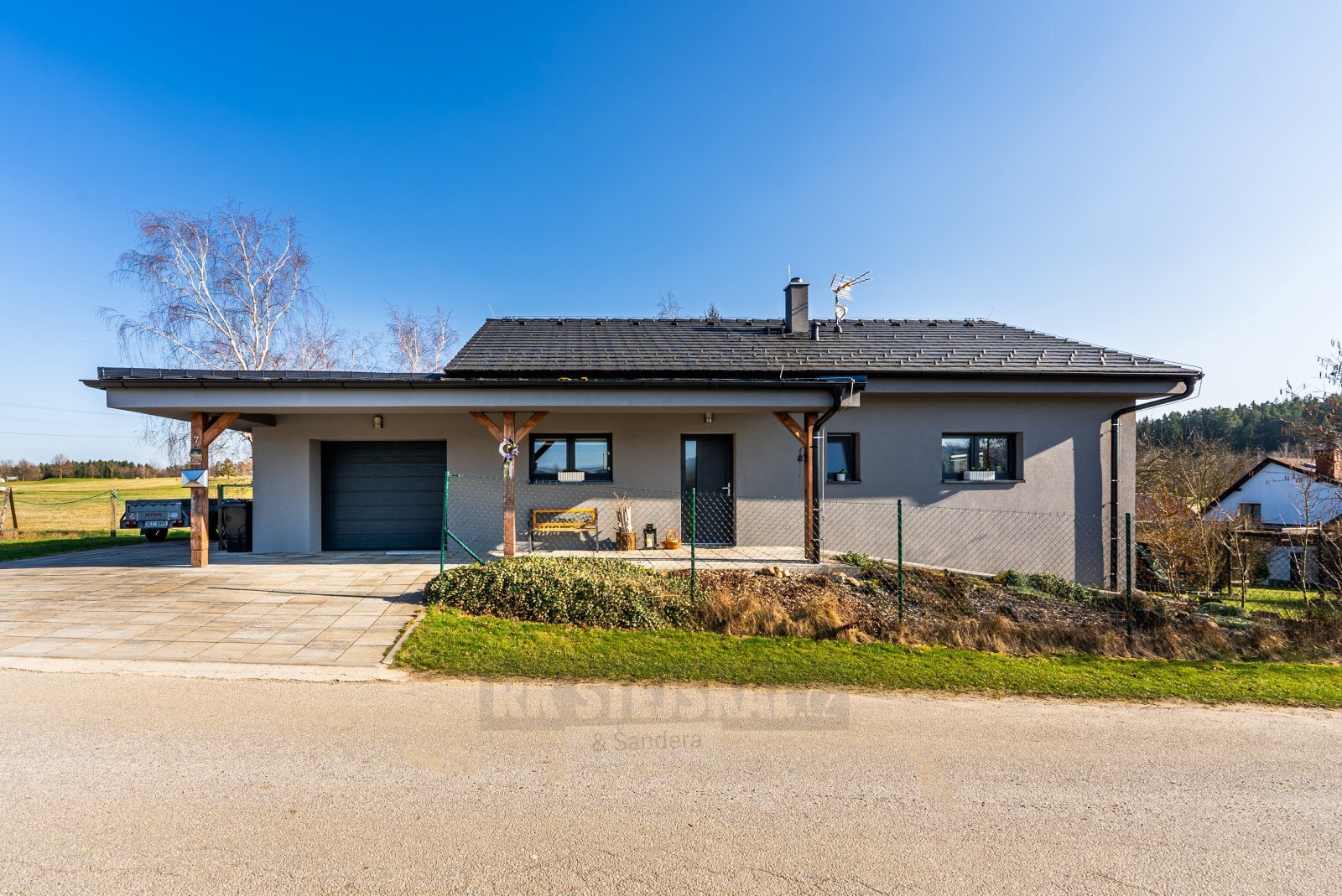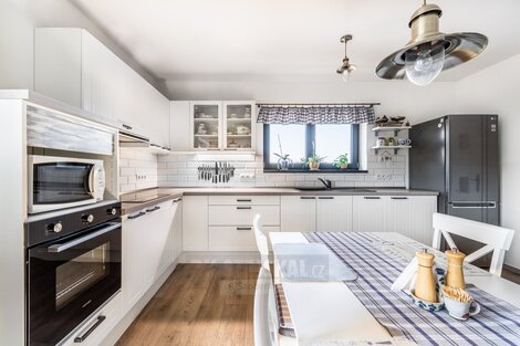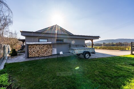 Nabízíme vám novostavbu rodinného domu s dispozicí 3+kk a užitnou plochou 121 m2 je situována na pozemku o výměře 801 m2 v klidné a velmi vyhledávané lokalitě přímo u resortu Svachovka. Tato výjimečná poloha přináší ideální spojení bydlení v přírodě s pohodlným přístupem ke sportu, relaxaci i kompletní občanské vybavenosti. Dispoziční řešení domu je promyšlené a praktické. Z předsíně vstoupíte do chodby, ze které je přístup do dvou samostatných pokojů, koupelny, šatny, odděleného WC a prostorného obývacího pokoje s kuchyňským koutem a samostatnou spíží. Dominantou obytné části jsou krbová kamna, která vytvářejí příjemnou atmosféru a zároveň slouží jako doplňkový zdroj tepla. Z obývacího prostoru je přímý vstup na zastřešenou terasu o velikosti 19 m2 s krásným výhledem do okolní krajiny. Část terasy je zasklená a její součástí je venkovní krb, plně vybavená letní kuchyně a také samostatná toaleta přístupná přímo z terasy - ideální řešení při pobytu venku s rodinou či přáteli. Dům byl postaven z kvalitních materiálů s důrazem na energetickou úspornost, což se pozitivně promítá do nízkých provozních nákladů. Zdrojem vody je vlastní vrtaná studna o hloubce 28 metrů, dešťová voda je svedena do retenční nádrže s přepadem. Odpad je napojen na čistírnu odpadních vod provozovanou sousedním hotelem. Vytápění zajišťuje elektrický kotel napojený na podlahové topení, doplněný krbovou vložkou v obývacím pokoji. Ohřev vody obstarává elektrický bojler umístěný v technické místnosti. Nově instalované solární panely pro ohřev vody dále přispívají ke snížení energetických nákladů. Udržovaná zahrada nabízí skleník, vyvýšené záhony, kompost, ovocné stromky i plechovou konstrukci vhodnou k uskladnění nářadí. Sklep je přístupný z venkovní části domu a je rozdělen na dvě samostatné místnosti sloužící jako praktické skladové prostory. Parkování je možné v garáži nebo pohodlně přímo na vlastním pozemku před domem. Z garáže je zároveň vstup do technické místnosti, kde je umístěn bojler a elektrokotel. Nemovitost se nachází pouhých 5 km od Český Krumlov, s velmi dobrým napojením na Kaplice i České Budějovice. Významným benefitem je také nově vybudovaná dálnice D3, která zajišťuje rychlé spojení směrem na Prahu i do Rakouska. Okolí je obklopeno přírodou a nabízí bohaté možnosti volnočasových aktivit - od golfu a cyklostezek přes turistiku až po relaxaci přímo v místě bydliště. V případě zájmu o bližší informace či domluvení prohlídky nás neváhejte kontaktovat.