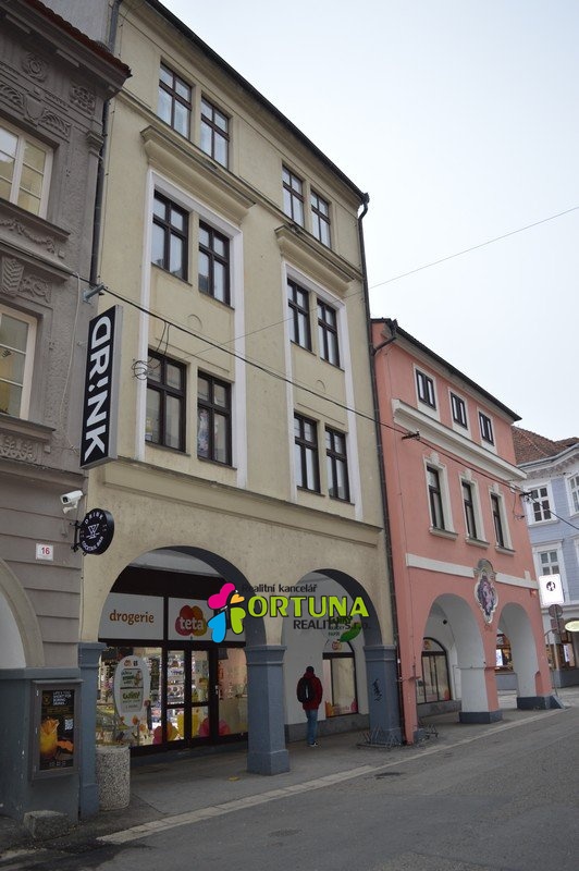 Nabízíme k prodeji víceúčelovou budovu zbudovanou roku 1926, která se skládá ze dvou, dnes propojených objektů na rohu ulic Krajinská a Hroznová - původní obchodní palác "TE - TA". Dům byl postaven původně jako obchodní dům s jedním velkým bytem ve 4. NP a třemi pokoji v podkroví. Výměry: 1. Podzemní podlaží - 155 m2 1. První nadzemní podlaží - 343 m2 2. Druhé nadzemní podlaží - 402 m2 3. Třetí nadzemní podlaží - 404 m2 4. Čtvrté nadzemní podlaží - 137 m2 5. Páté nadzemní podlaží - 123 m2 CELKEM: 1.563 m2 Současné využití: V objektu je pronajato 1. až 3.NP maloobchodnímu prodejci. Všechna pronajatá podlaží obchodních prostor jsou spojena osobním výtahem Schindler. Ve čtvrtém NP je dále volný byt o výměře 137,2 m2. K bytu patří střešní terasa, ca. 52 m2. Ve pátém NP je provedena hrubá příprava pro výstavbu dalšího bytu s přípravou přípojek vody a odpadu a elektřiny a zemního plynu. Budova má zděné svislé konstrukce - vodorovné konstrukce pak za použití železo-betonových stropů. Objekt je připojen k sítím: elektřina, zemní plyn, veřejný vodovod, kanalizace, internet. Vytápění zajišťují vlastní dva plynové kotle. Údaje o spotřebě na vyžádání. Objekt má dokončený projekt PBŘ + EPS na základě souhlasného závazného stanoviska HZS Jihočeského kraje. Pro bližší informace a prohlídku kontaktujte makléře zakázky.