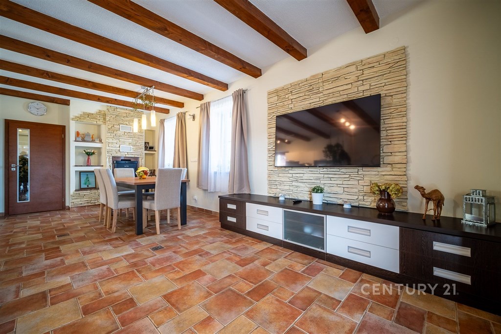 Koroseky - malá vesnice a velký klid. Místo, kde můžete trávit volný čas v přírodě. Do míst, kam Budějčáci jezdí na výlety, vy budete jezdit domů. Pokud hledáte rodinný dům právě v takovém prostředí, mohla by vás oslovit nabídka rodinného domu v Korosekách u Českých Budějovic. Dům disponuje užitnou plochou 220 m2 a stojí na pozemku o výměře 161 m2. Nemovitost je dispozičně řešena jako 4+kk a nabízí praktické a komfortní uspořádání pro rodinné bydlení. Hlavní přednosti domu: • klidná lokalita v přírodě s rychlou dostupností do Českých Budějovic • domácí wellness - sauna pro každodenní relaxaci • velkorysý obytný prostor pro rodinný život i setkávání s přáteli • krbová kamna pro příjemnou atmosféru domova • krytá terasa s venkovním krbem - ideální místo pro letní grilování Dominantou domu je velkorysý obytný prostor se světlou kuchyní propojenou s jídelnou a obývacím pokojem. Kuchyň nabízí dostatek pracovního prostoru a díky velkým oknům působí velmi vzdušně. Interiér doplňují dřevěné stropní trámy, přírodní materiály a krbová kamna, která dodávají prostoru příjemnou atmosféru domova. Z obývacího prostoru je přímý vstup na krytou terasu o velikosti cca 16 m2, která nabízí ideální místo pro posezení s rodinou či přáteli. Součástí terasy je také venkovní krb. V přízemí se dále nachází velká univerzální místnost, wellness se saunou a sprchovým koutem a také samostatné WC. Podkroví je přístupné po krátkém schodišti vedoucím do prostorné haly s pracovnou, která tvoří hlavní komunikační prostor domu. Z haly je vstup do velké ložnice a protilehlého pokoje. Součástí podkroví je také prostorná koupelna vybavená vanou, sprchovým koutem, umyvadlem a toaletou. Dům je vybaven technologiemi, které přispívají k úspornému provozu: • podlahové vytápění • krbová vložka • tepelné čerpadlo • fotovoltaická elektrárna Nemovitost je napojena na obecní vodovod, odpad je řešen čtyřkomorovým septikem. Součástí domu je také kryté parkovací stání. Pro více informací nebo sjednání prohlídky nás neváhejte kontaktovat. Rádi vám nemovitost osobně představíme.