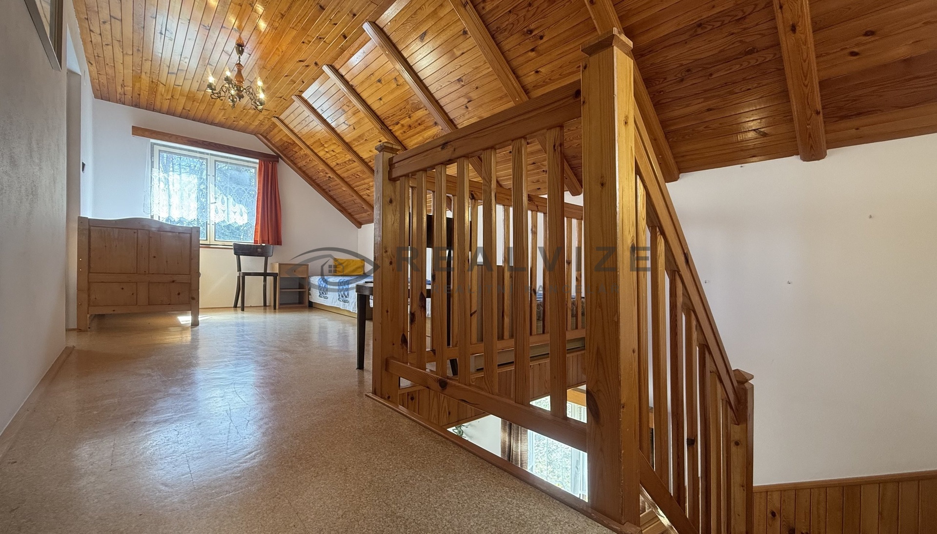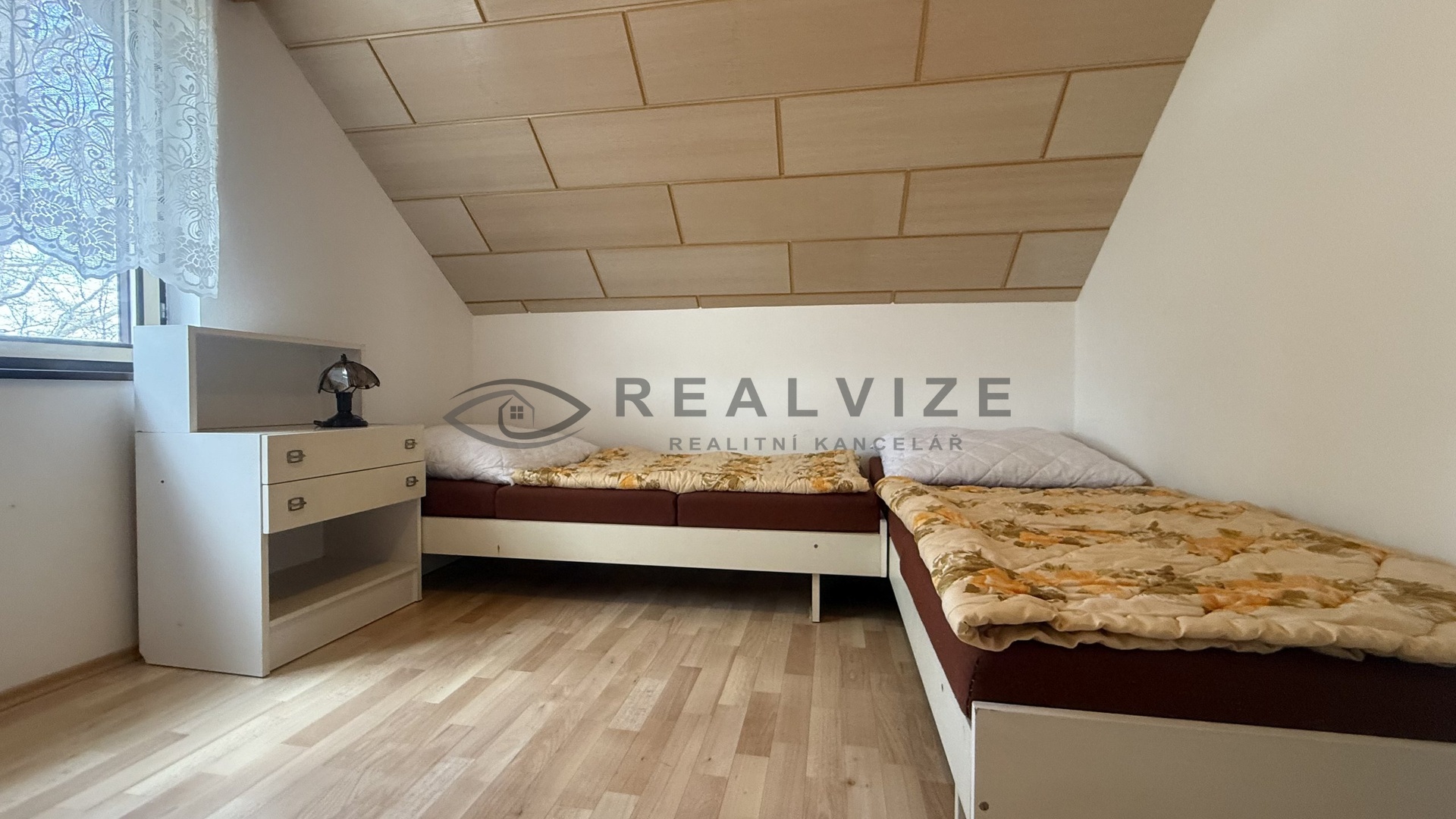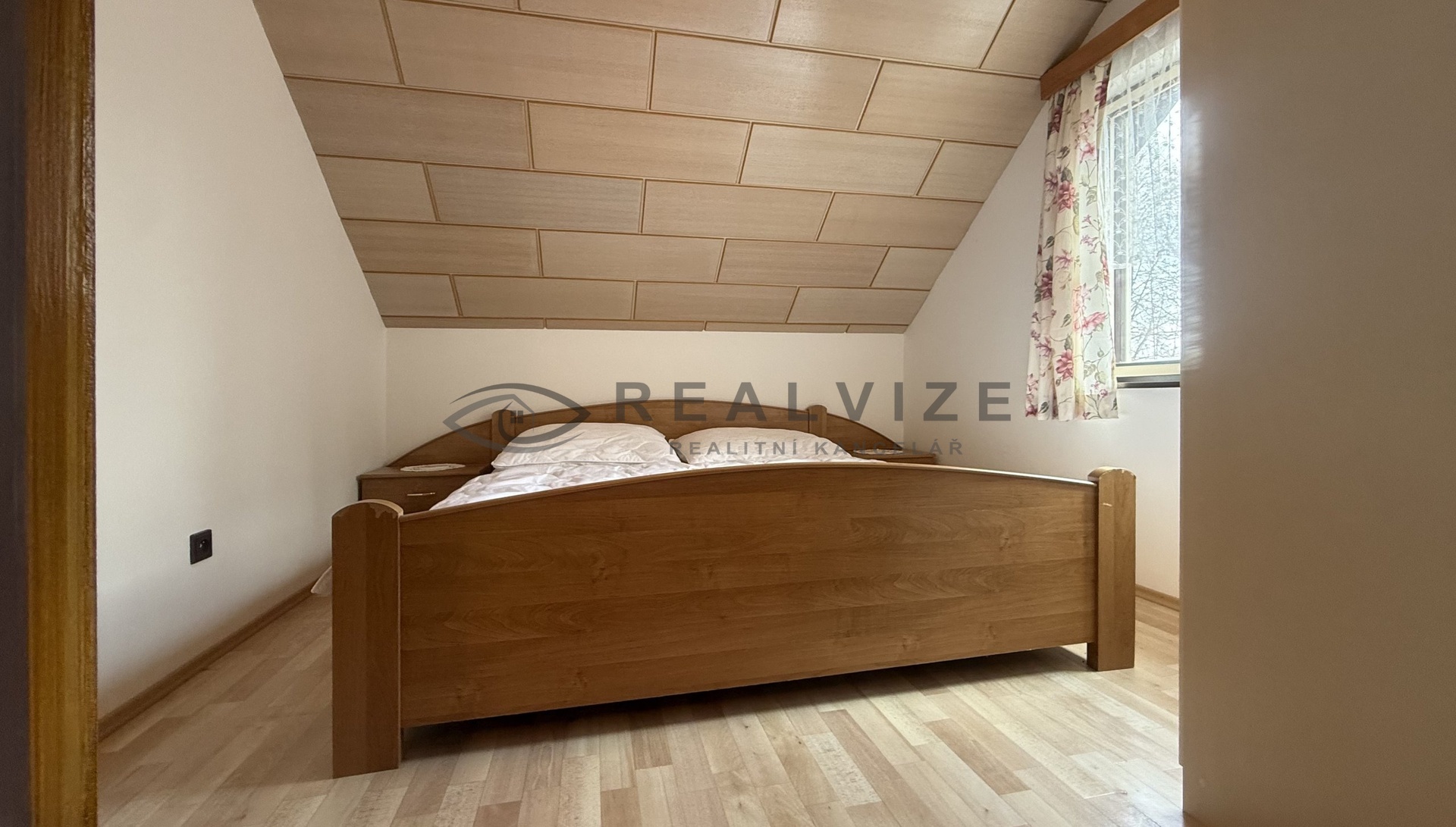 V malé obci Bedřichov u Horní Stropnice nabízím k prodeji velmi pěknou, zděnu chatu s výhledem na Novohradské hory. K chatě náleží pozemek o rozloze 910 m2, zastavěná plocha je 63 m2 a dispozice jsou 3+kk. V prvním nadzemním podlaží je garáž se sklepem, vstupní chodba, koupelna s vanou, samostatné wc, kuchyně a obývací pokoj se vstupem na terasu a do zahrady. Zahrada je orientovaná na jižní stranu a je celá oplocená. V prvním patře jsou dvě samostatné ložnice. Topení chaty zajišťují krbová kamna v obývacím pokoji, průduchy v komínu se mohou v horních ložnicích otevřít a a tím je vytopí. Pod každým oknem jsou rozvedeny zásuvky na případné elektrické topení. Voda je rozvedena z vrtu a odpady jsou svedeny do septiku s přepadem. Chata byla vystavěna v 80tých letech, z cihel (30cm), rozvody vody jsou v plastu a elektřina v mědi, okna jsou dřevěná, podlahy v přízemí dlažba, v ložnicích plovoucí podlahy a korek. Nemovitost je ve velmi dobrém stavu, ihned k užívání, možná i k trvalému bydlení. V posledních letech byla pronajímána. Více informací poskytnu telefonicky, financování zprostředkuji.