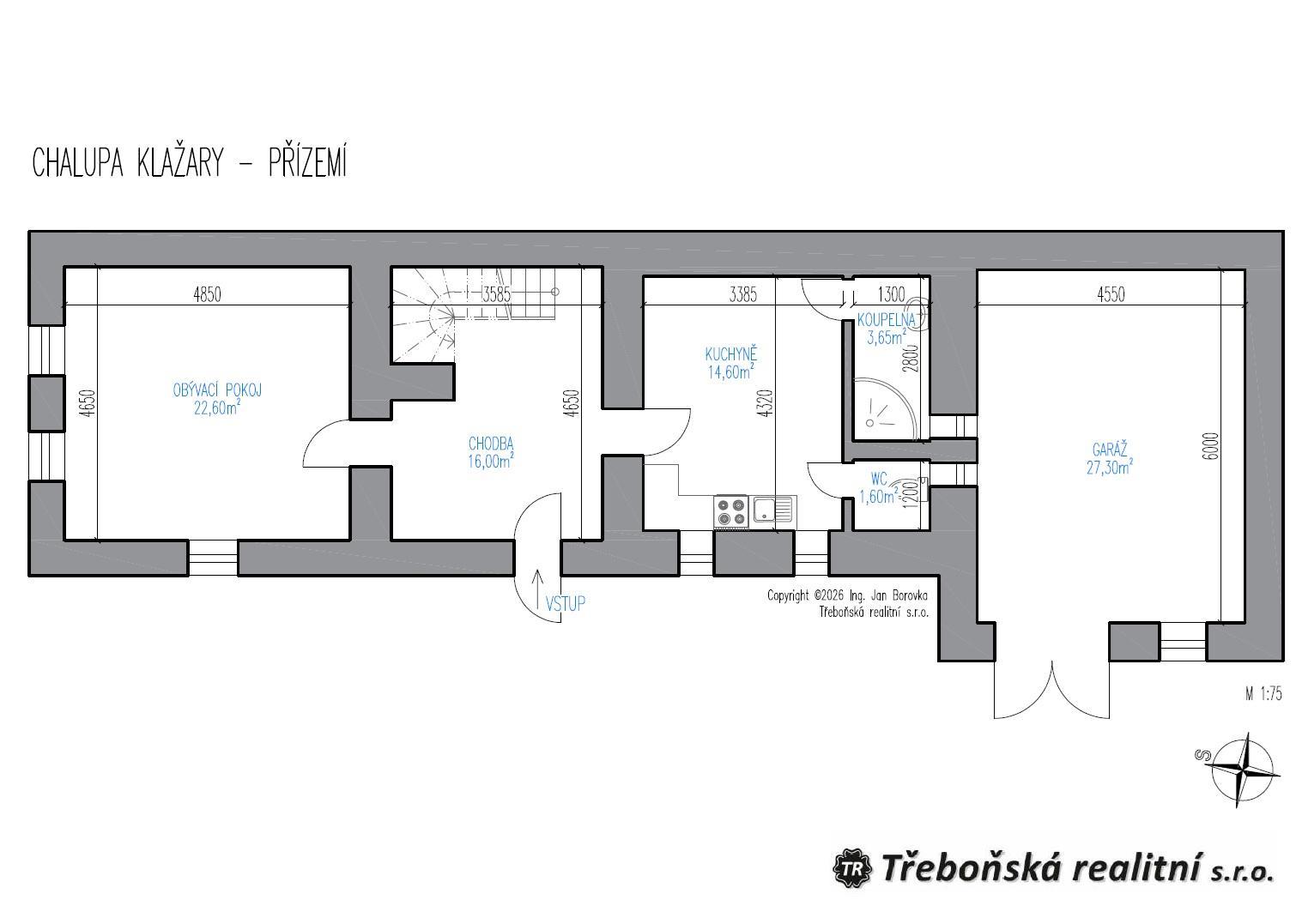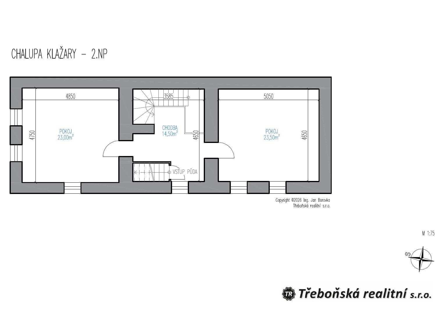 Ve výhradním zastoupení majitele nabízíme k prodeji kouzelnou chalupu na samotě, zasazenou do krásné jihočeské krajiny v malebné vesnici Klažary, část obce Kamenná nedaleko Trhových Svinů. Tato nemovitost s bohatou historií vás okouzlí především svou polohou nachází se v klidném prostředí obklopeném přírodou, kde si naplno vychutnáte soukromí, ticho a jedinečnou atmosféru venkova. Ideální místo pro ty, kdo hledají únik od ruchu města, prostor pro odpočinek i načerpání nové energie. Zastavěná plocha domu je 136 m2, celková plocha pozemků je 805 m2. Po vstupu do domu se přes chodbu dostáváme vlevo do obývacího pokoje, kde jsou umístěna krbová kamna. Vpravo z chodby se nachází kuchyň a dále pak koupelna se sprchovým koutem a samostatné WC. V patře jsou pak další 2 pokoje a výstup na prostornou půdu. Součástí prodávaného domu je i velká garáž o výměře 27 m2. K domu náleží prostorná pergola, ideální pro venkovní posezení s rodinou a přáteli. Elektřina 230/400 V, voda je ze studny, odpad je řešen septikem. Díky své poloze nabízí nemovitost široké možnosti využití od klidného rodinného bydlení přes rekreaci až po případné podnikání v oblasti ubytování, kde hosté ocení právě jedinečné prostředí samoty v přírodě. Energetická třída G je uvedena dočasně, vzhledem k novele č. 406/2000 Sb. o hospodaření s energií. Po dodání energetického štítku bude uvedena skutečná energetická třída této nemovitosti. Prohlídku prodávané nemovitosti je možné domluvit na uvedeném telefonním čísle nebo e-mailu. V případě více zájemců bude upřednostněn zájemce s nejvyšší nabídnutou kupní cenou. Financování nemovitosti Vám rádi zajistíme. <a href="https://www.eurobydleni.cz/ostatni/garazove-stani/praha-9/obec-hloubetin/pronajem/"><strong>Pronájem garážového stání Praha 9, Hloubětín</strong></a>