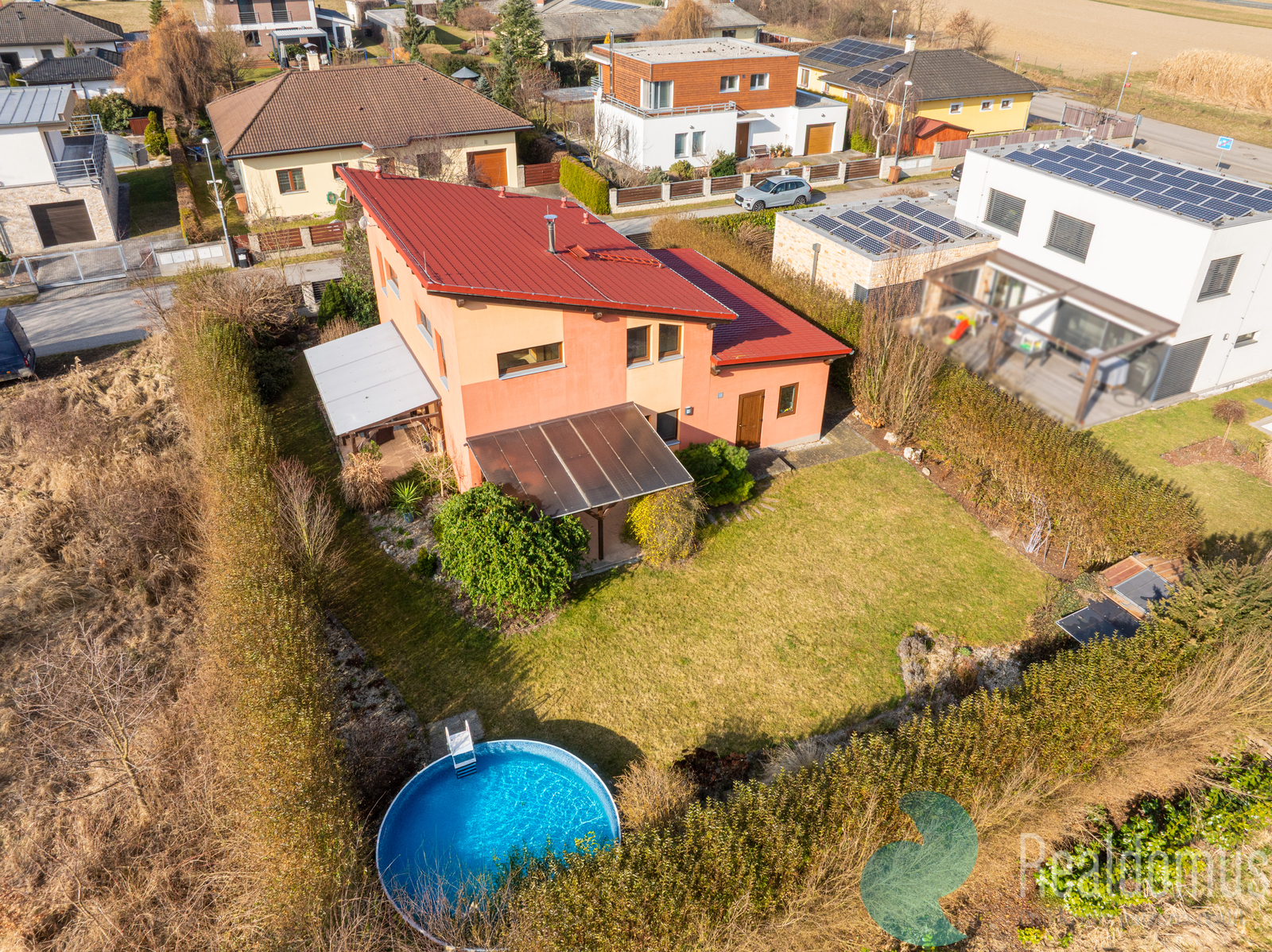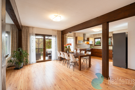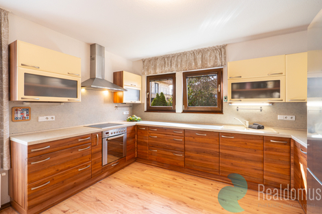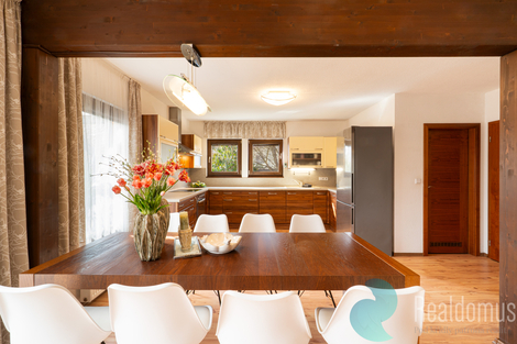 Ve výhradním zastoupení majitele nabízíme k prodeji moderní nízkoenergetický rodinný dům se 2 krytými terasami o celkové užitné ploše 146,82 m2. Dům byl zkolaudován v lednu 2009 a nachází se na velkorysé vzrostlé zahradě na jednom z nejžádanějších míst v Českých Budějovicích, v blízkosti parku Stromovka. Jde o kvalitní dřevostavbu - sendvičový systém renomované firmy z Rýmařova (výrobce poskytuje záruku 50 let na konstrukci), která vás překvapí velkorysým prostorem i energetickou úsporností. Dům o dispozici 5+kk je díky velkým oknům a přívětivé orientaci prosvětlený a vzdušný a nabízí dostatek prostoru i pro větší rodinu. V přízemí se nachází hlavní obytný prostor, který tvoří spojení prostorné kuchyně (17,70 m2), haly s jídelnou (16,07 m2) a obývacího pokoje s kamny (17,03 m2). Dále zde najdeme pokoj/pracovnu 10,77 m2, koupelnu s toaletou (3,01 m2), komoru 2,27 m2 a zádveří (3,29 m2). Podkroví tvoří odpočinkovou část domu, je zde hala 11,08 m2 a tři samostatné neprůchozí pokoje (13,29 m2, 19,06 m2, 20,12 m2), dále koupelna s vanou a sprchou (8,55 m2) a samostatné WC (2,27 m2). Dům je vytápěn elektrickým kotlem, v místnostech jsou radiátory a v koupelnách topné žebříky. V koupelně v podkroví je instalováno podlahové vytápění. Krbová kamna umístěná v přízemí v hlavní obytné místnosti vytvářejí nejen příjemnou atmosféru, ale poskytují také možnost nezávislého topení, které oceníte především v přechodových obdobích, kdy je příjemné si přitopit, ale není nutno zapínat centrální vytápění. U domu je plynová přípojka, která poskytuje možnost napojení topného systému na tento zdroj vytápění. K dispozici je elektrická přípojka 230 V i 400 V, přičemž 400 V je vyvedeno také do garáže. Střecha domu je z plechové krytiny - švédské oceli, okna jsou plastová s izolačními dvojskly. V obytných místnostech jsou položeny kvalitní plovoucí podlahy, v chodbě v přízemí a v koupelnách je dlažba. Dům není podsklepen, dostatek úložného prostoru ovšem poskytuje velká zděná garáž s úložným prostorem na půdě a zahradní domek. Mezi hlavní přednosti této nabídky patří: - skvělá lokalita - kvalitně provedená stavba s nízkými provozními náklady - velká vzrostlá zahrada s posezením a bazénem - parkování na pozemku pro 2 auta - velká garáž - 4 samostatné velké ložnice Dům vám velmi rádi osobně představíme na prohlídce, kterou si můžete rezervovat u makléře této nabídky. Uvedené výměry jsou orientační. V případě více zájemců bude nemovitost prodána nejlepší nabídce a majitel si vyhrazuje právo vybrat kupujícího na základě jím zvolených kritérií. Veškeré zveřejněné údaje v tomto inzerátu mají pouze informativní charakter.