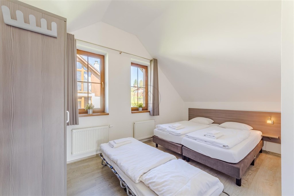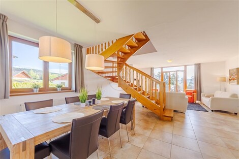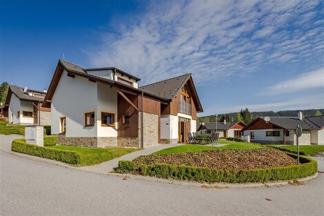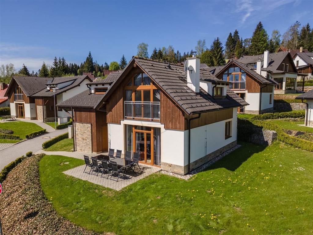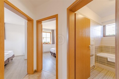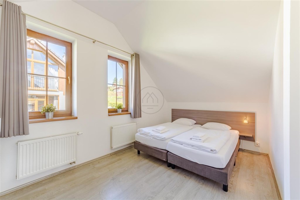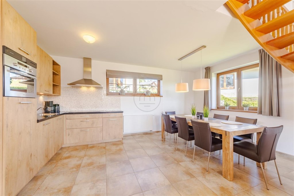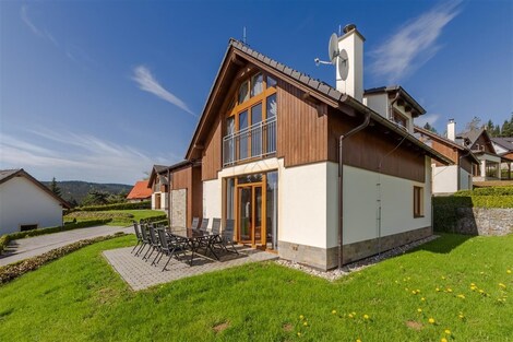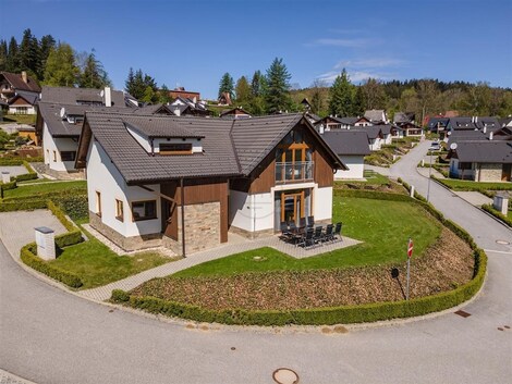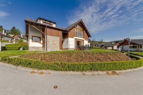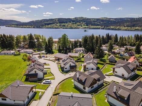 Představujeme tento luxusní rodinný dům 6+kk s výhledem na vodu, který se nachází v lokalitě Kobylnice, cca 350 metrů od břehu Lipna. Velkorysý dům s kapacitou až 14 osob je vhodně navržen k uspokojení nejnáročnějších potřeb budoucích uživatelů a poskytuje exkluzivní místo k rekreaci, odpočinku, nebo trvalému bydlení. Objekt disponuje pěti ložnicemi, třemi koupelnami, zádveřím, skladem a prostorným obývacím pokojem s kuchyní, kde jde vstup na slunnou terasu s výhledem na jezero. Díky velkým oknům a orientaci na jih je v interiéru spoustu světla, prostor působí velice otevřeně a útulně. V ceně je kompletní vybavení, nábytek a elektrospotřebiče, dále k dispozici vyhrazené parkovací stání. Dům má inteligentní vytápění, které se ovládá telefonem. Výhodou jsou krbová kamna, vinylové podlahy, obložené sokly pohledovým kamenem a dřevěné obložení štítu. Na zahradě je také zahradní domek a sklad. Jedná se o největší objekt v areálu Residence Lipno. Správcovská společnost zajišťuje provoz a údržbu areálu, včetně infrastruktury, recepce a dětské hřiště. Platí se cca 40.000, Kč ročně za vše (internet, údržba, veř. osvětlení, odpad atd.) kromě spotřeby elektřiny, která je zvlášť. Lze využít efektivní správy pronájmu nemovitosti v době Vaší nepřítomnosti. Předmětem prodeje je obchodní podíl účelově založené společnosti, která dům výlučně vlastní. Poloha Lipna nad Vltavou láká v každém ročním období a cílí na všechny sezóny. Na jaře a na podzim na cyklistiku, turistiku, jízdu na koních, či rybaření. V létě pak vítá zejména milovníky vodních sportů a jachtingu. Zima vládne zamrzlou krajinou, ideální na bruslení, lyžování a běžky. V okolí najdete vše co potřebujete k rekreaci, pláž, promenádu, obchody, restaurace, cyklostezky, sjezdovky, stezku v korunách stromů, tělocvičnu, marínu, a další. Pořiďte si nové rodinné sídlo v top lokalitě v přírodě, v podobě investice s možným pravidelným výnosem a dlouhodobým zhodnocením. Kontaktujte specialistu na nemovitosti v lipenské lokalitě a domluvte si prohlídku právě teď.